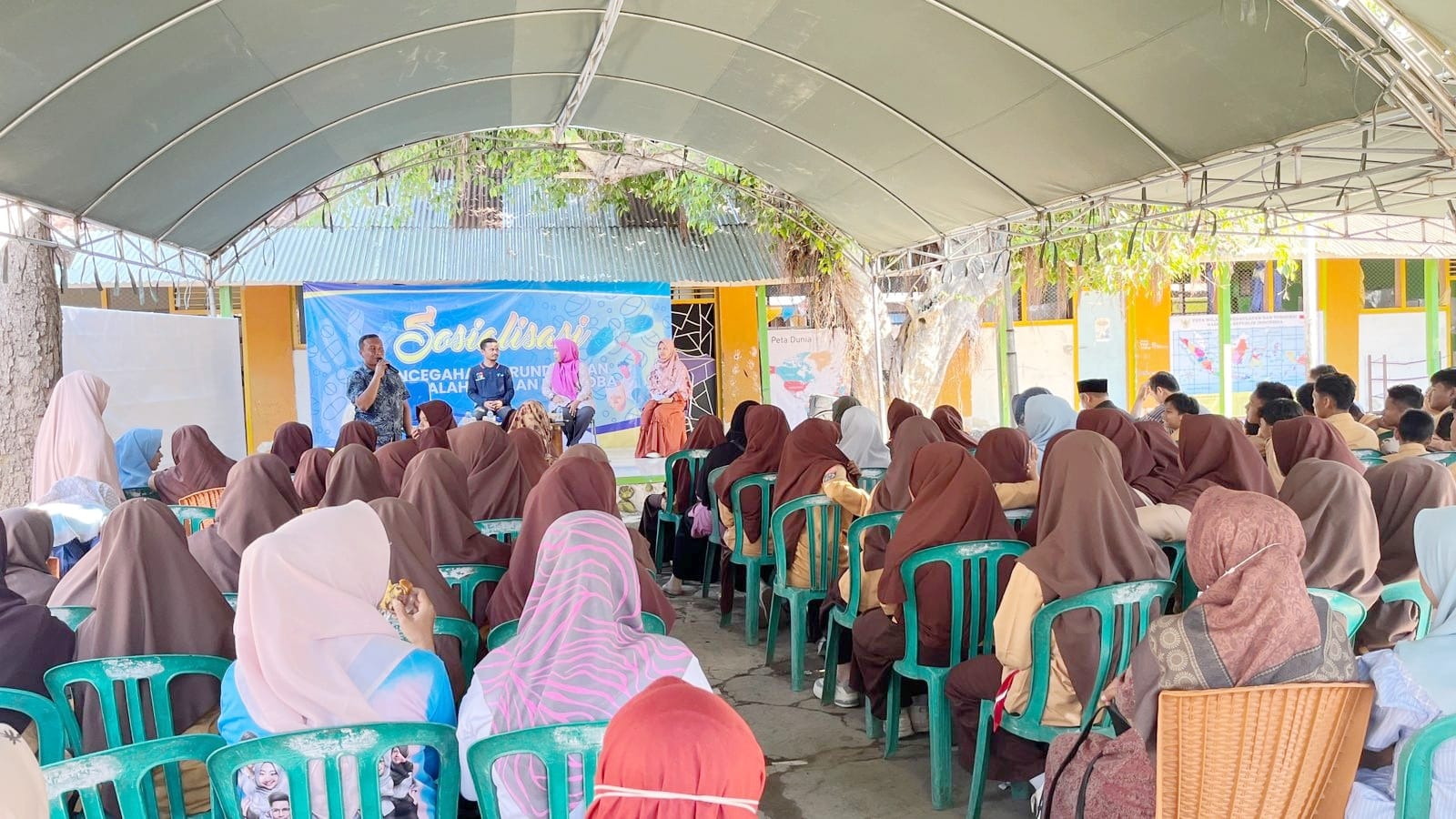 Salah satu kegiatan preventif tersebut digelar di SMP IT Al Hilmi Dompu, yang berada di Kelurahan Bali—daerah yang sedang diarahkan untuk menjadi model Kampung Bebas dari Narkoba.