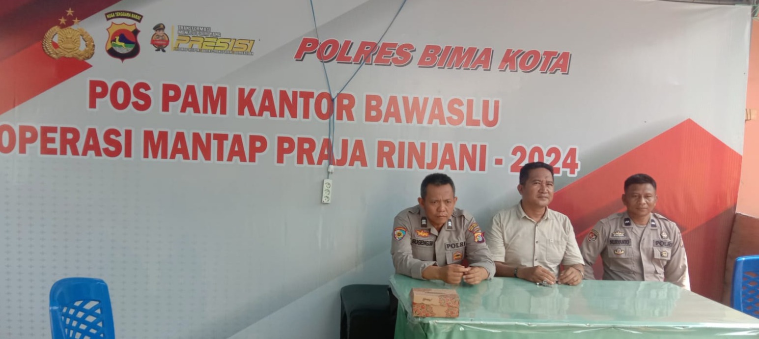 Kota Bima, NTB (10 November 2024) – Dalam rangka memastikan keamanan dan kelancaran proses Pemilihan Kepala Daerah (Pilkada) Serentak 2024 di Kota Bima, personel Operasi Mantap Praja (OMP) Rinjani 2024 dari Polres Bima Kota melaksanakan pengamanan intensif di Kantor Komisi Pemilihan Umum (KPU) dan Badan Pengawas Pemilu (Bawaslu) Kota Bima. Pengamanan dilakukan secara ketat selama 24 jam untuk mengantisipasi segala bentuk gangguan keamanan.