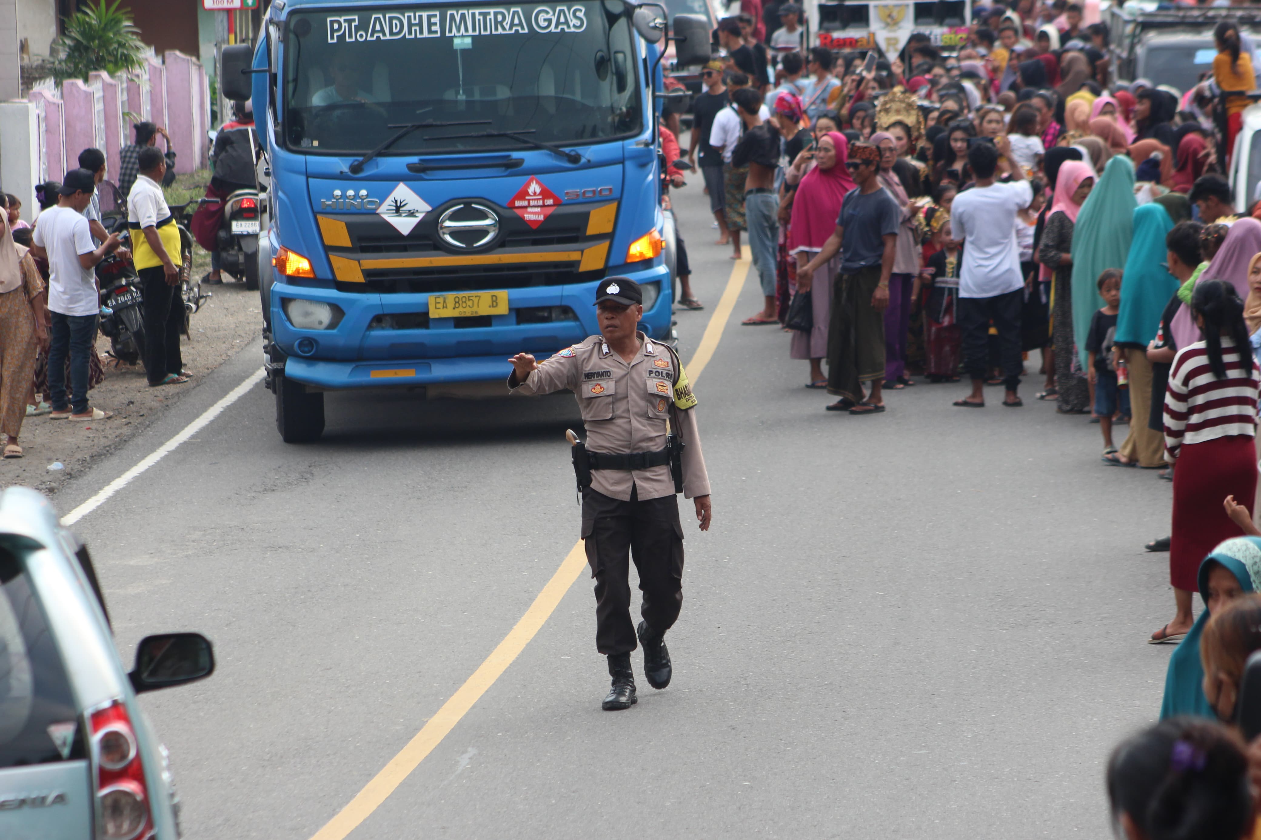 Bripka Heriyanto bersama petugas lainnya memberikan pengamanan penuh untuk memastikan kelancaran dan keselamatan warga yang terlibat dalam kegiatan tersebut.