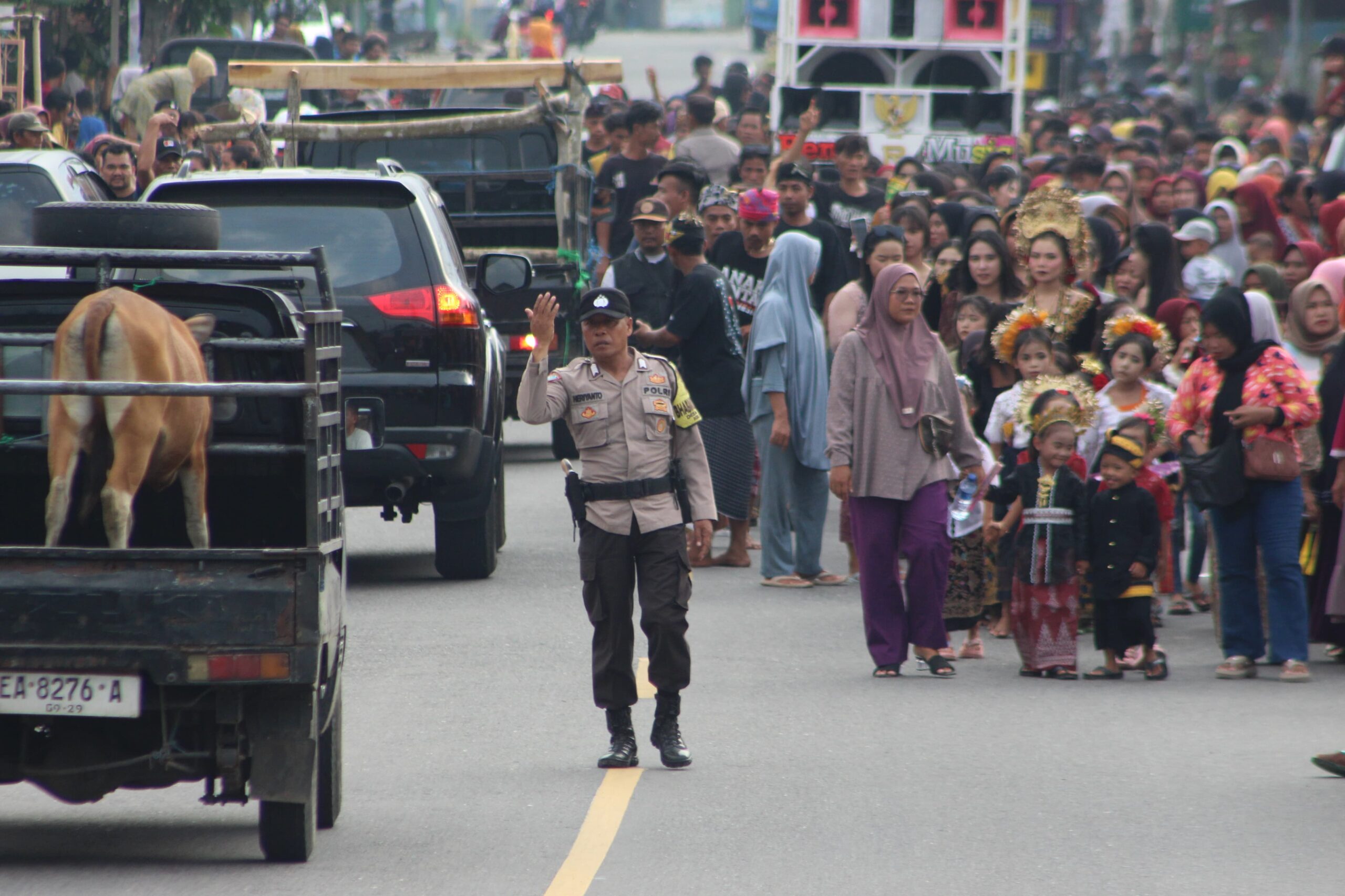 Bripka Heriyanto bersama petugas lainnya memberikan pengamanan penuh untuk memastikan kelancaran dan keselamatan warga yang terlibat dalam kegiatan tersebut.