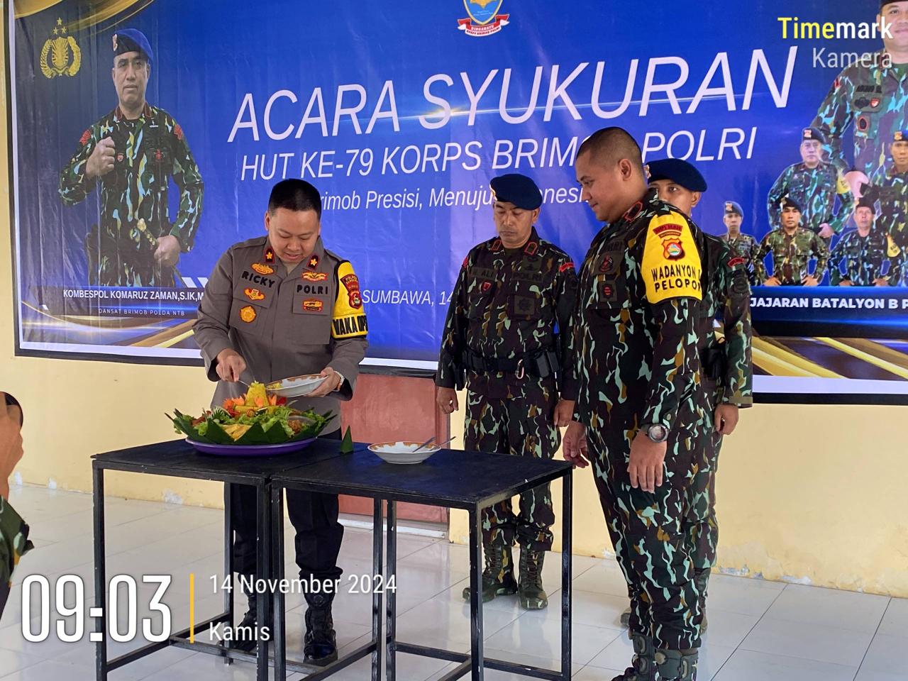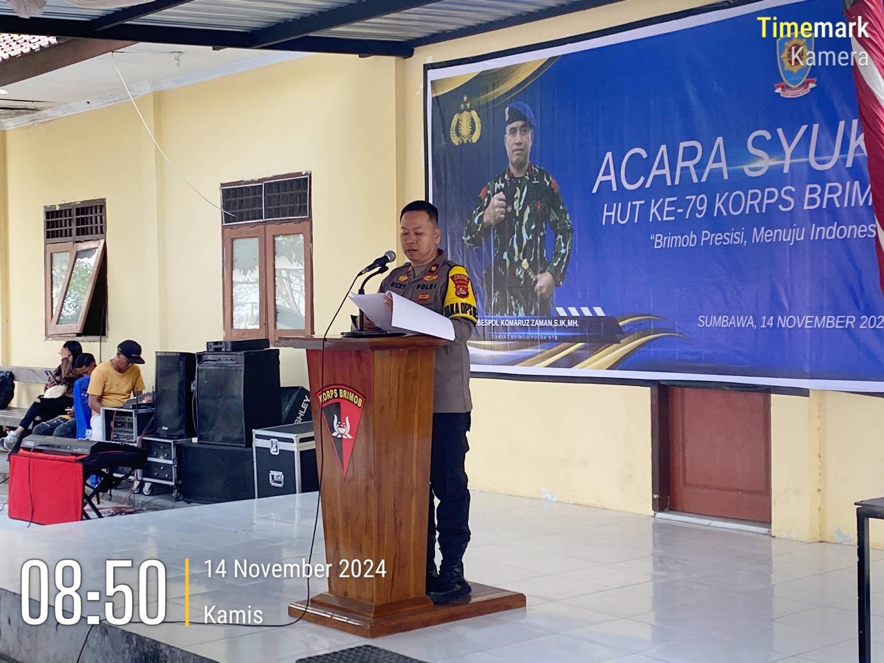 Sumbawa Besar-NTB, Personel Polres Sumbawa dipimpin langsung Wakapolres Kompol Ricky Yuhanda SE, S.IK, M.M., didampingi para PJU menghadiri kegiatan syukuran HUT ke 79 Korps Brimob Polri Tahun 2024 dengan tema “Brimob Presisi Menuju Indonesia Maju, Kamis (14/11/24) pagi.