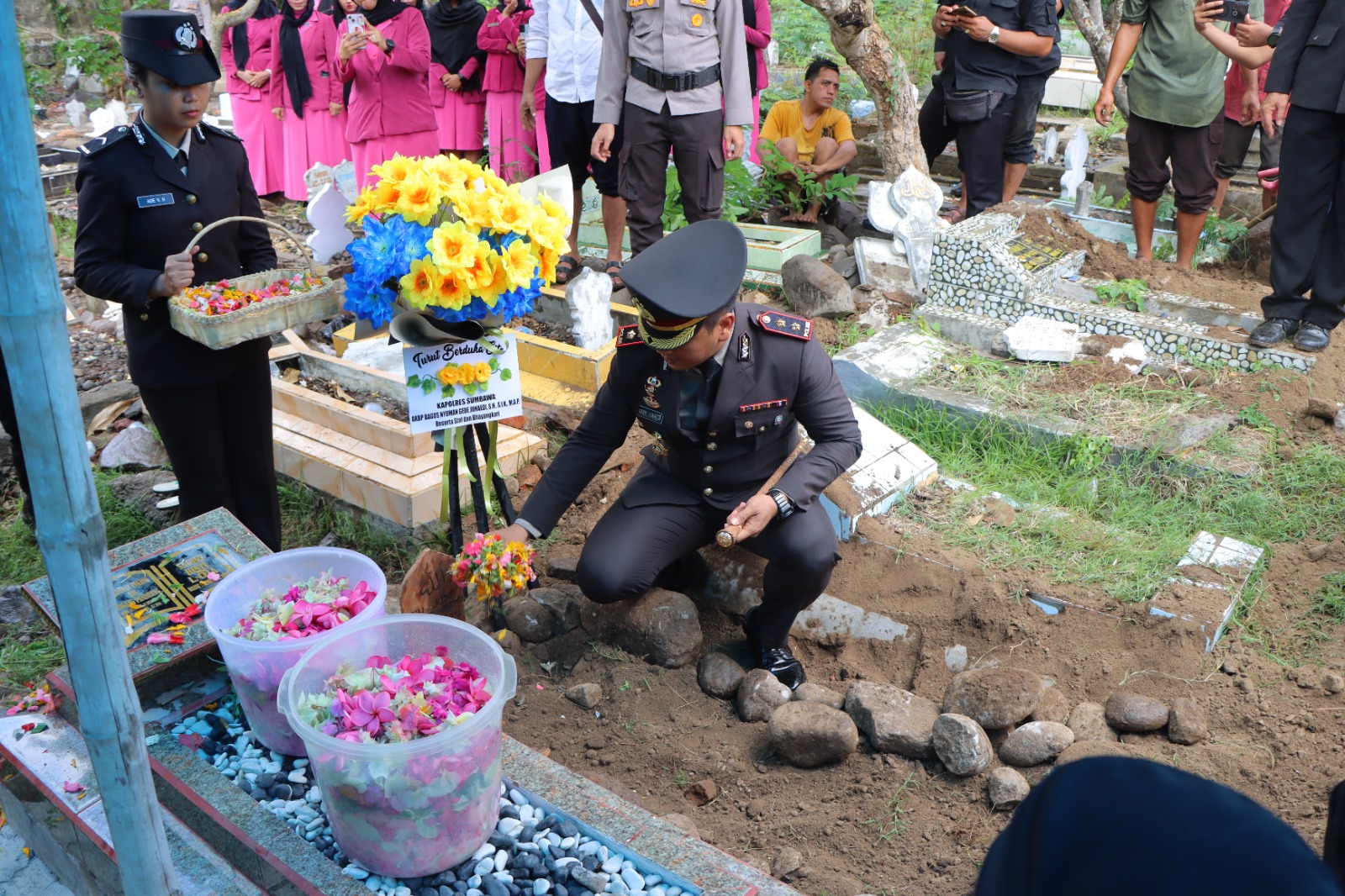Kapolres juga turut menyampaikan doa dan harapan agar keluarga yang ditinggalkan, terutama istri, anak-anak, dan keluarga almarhum, diberi kekuatan serta ketabahan.