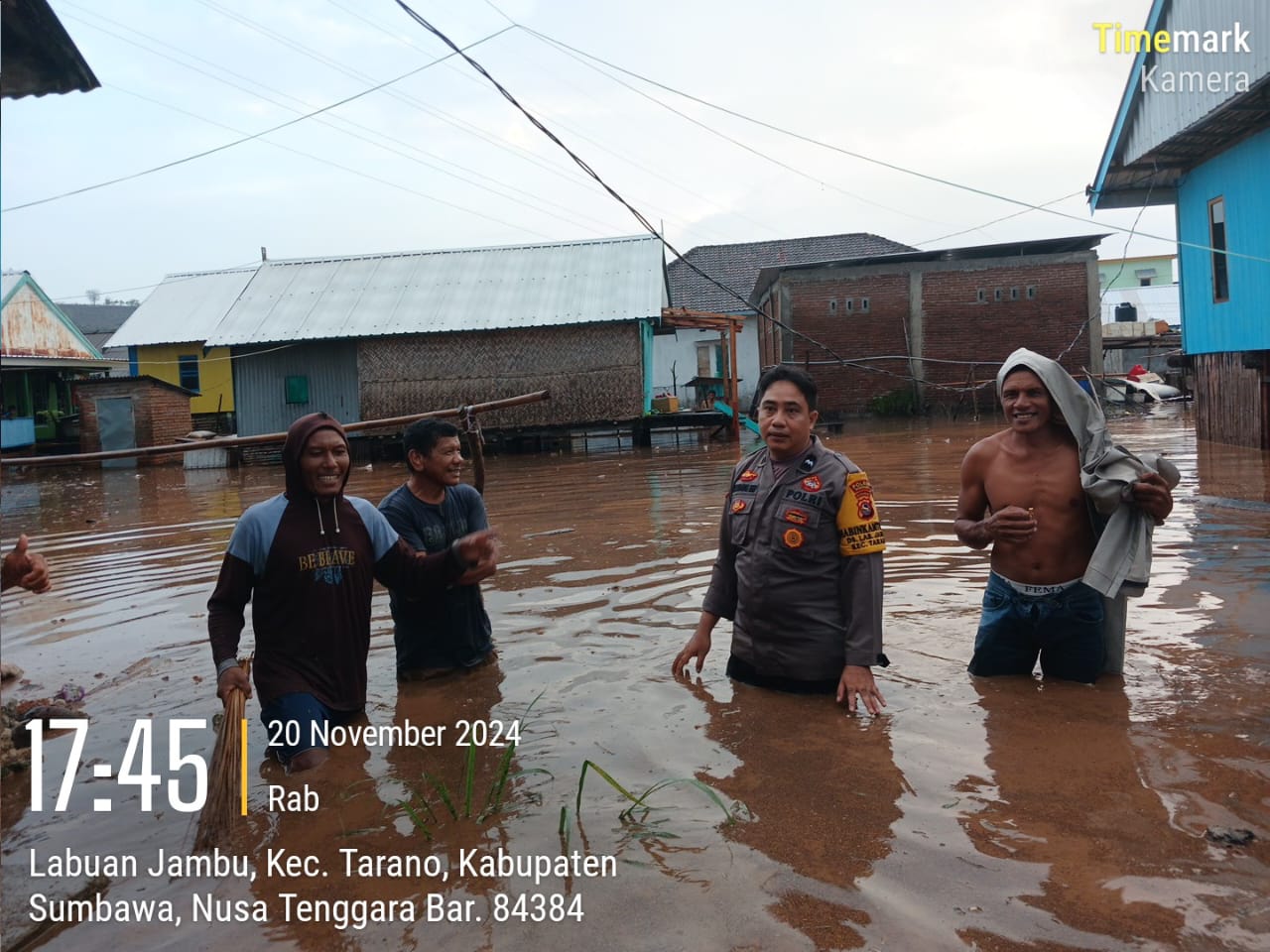 Sumbawa Besar-NTB, Personel Polsek Empang yang bertugas sebagai Bhabinkamtibmas Desa Labuhan Jambu Kecamatan Tarano yakni Aipda Bambang H.r.p, melaksanakan patroli dan memantau situasi banjir yang melanda wilayah binaannya, Rabu (20/11/24) sore.