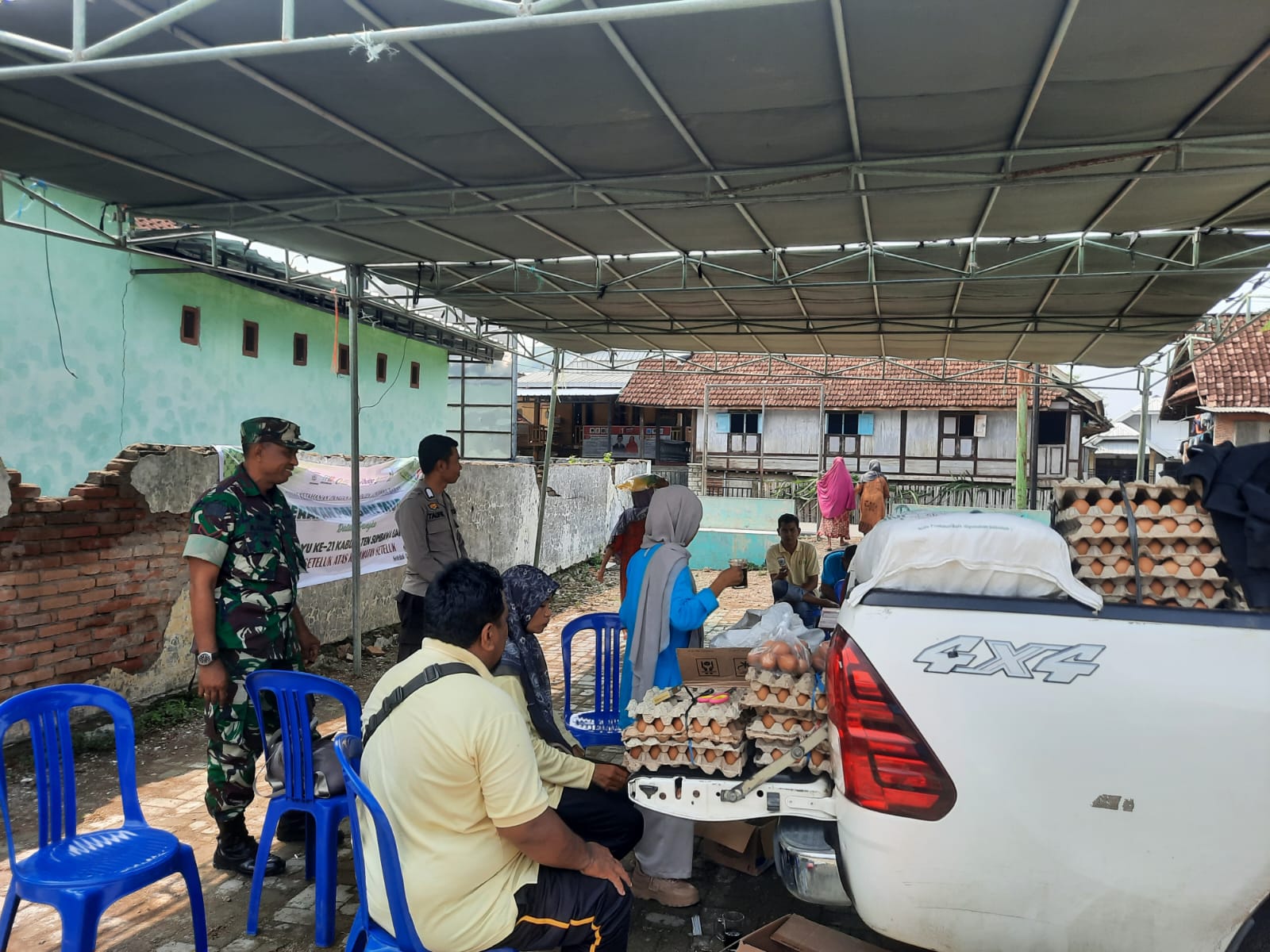 Sumbawa Barat – Bhabinkamtibmas Desa Seteluk Atas Polsek Seteluk bersinergi dengan Babinsa setempat melakukan pengamanan kegiatan Pangan Murah yang dilakukan Dinas Ketahanan Pangan Kabupaten Sumbawa Barat di Lapangan Samping Kantor Desa Seteluk Atas, Jumat (22/11/2024).