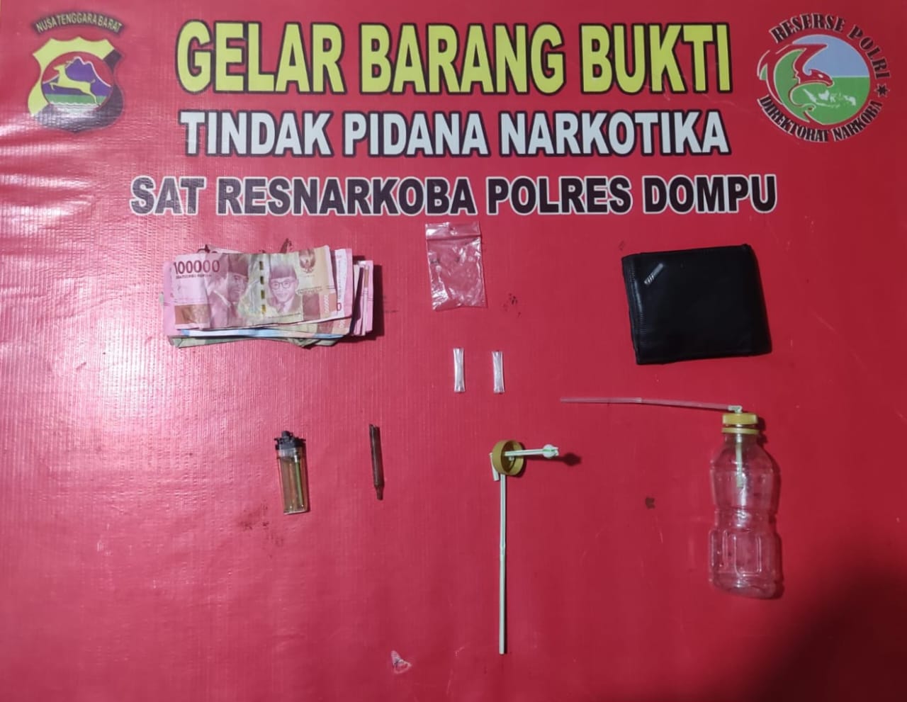 Pelaku akhirnya berhasil diamankan, dan melalui penyisiran di lokasi, tim menemukan dua plastik klip berisi kristal bening diduga sabu dengan berat netto 19,19 gram. Selain itu, barang bukti lainnya berupa satu dompet cokelat, satu ponsel OPPO biru tua, dan satu sepeda motor Honda Vario tanpa pelat nomor turut disita.