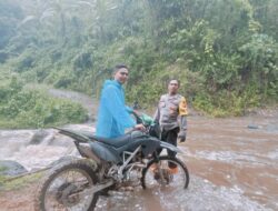 Selain itu, saat akan melintas di aliran sungai petugas harus bersama-sama mengangkat kendaraan menuju seberang dikarenakan volume aliran air sungai yang tinggi dan deras akibat hujan.