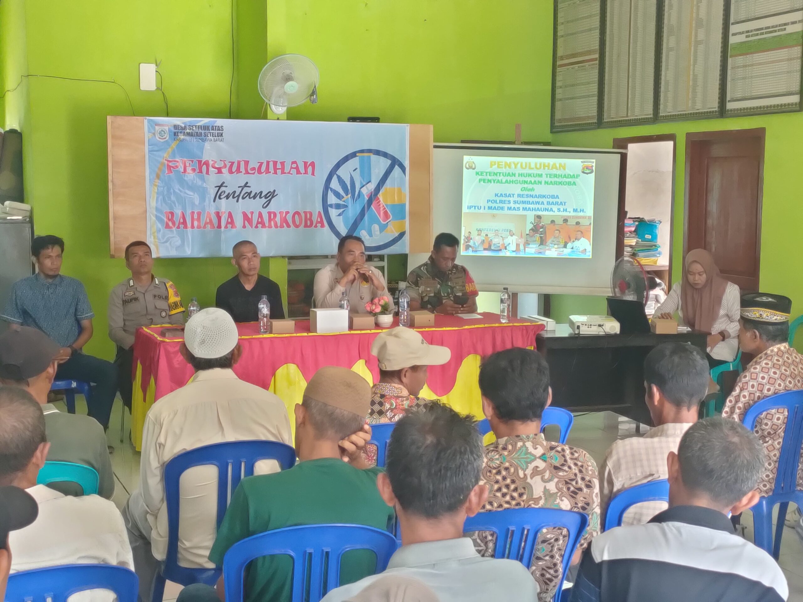 Penyuluhan tersebut diisi dengan dua materi utama. Materi pertama disampaikan oleh Ipda Saidi, KBO Sat Resnarkoba Polres Sumbawa Barat, yang membahas aspek hukum terkait narkoba dan jenis-jenis narkoba yang marak beredar di tengah masyarakat. Ipda Saidi menjelaskan bahwa narkoba memiliki dampak merugikan baik bagi kesehatan fisik maupun mental, serta memberikan sanksi hukum yang tegas bagi para pelaku.