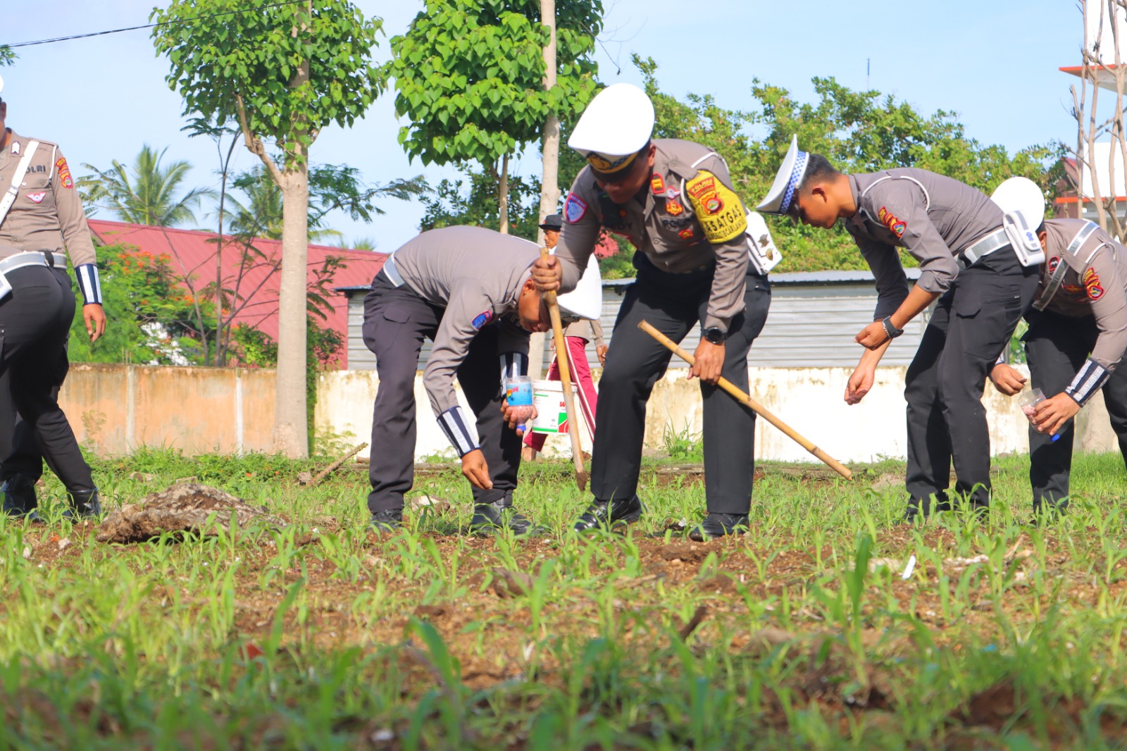 Lombok Utara – Polres Lombok Utara bersama Dinas Pertanian melaksanakan kegiatan pemupukan perdana tanaman jagung dalam Program Asta Cita Ketahanan Pangan. Kegiatan ini dihadiri Kapolres Lombok Utara, AKBP Didik Putra Kuncoro S.I.K. M.Si. bersama, Pejabat Utama, seluruh personil Polres Lombok Utara serta perwakilan dari Dinas Pertanian Kabupaten Lombok Utara.