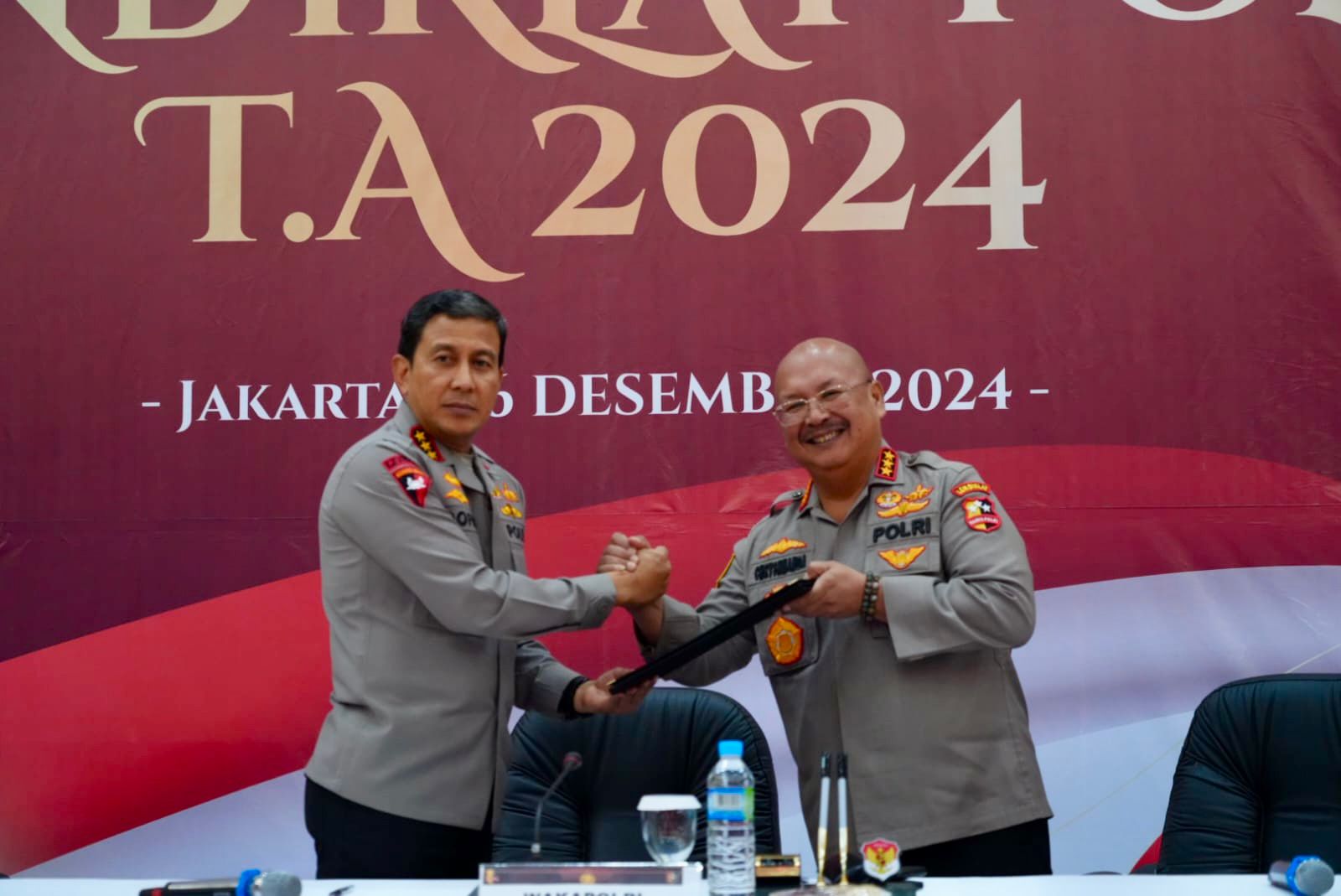 Jakarta Selatan – Dalam upaya memantapkan arah pendidikan dan pelatihan Polri yang berorientasi pada tantangan masa depan, Lembaga Pendidikan dan Pelatihan (Lemdiklat) Polri menggelar Sidang Pleno Dewan Pendidikan dan Pelatihan Kepolisian Negara Republik Indonesia Tahun 2024. Acara yang berlangsung pada Jumat, 6 Desember 2024, bertempat di Gedung Widya Warapsari, Jakarta Selatan, ini dipimpin langsung oleh Wakapolri Komjen Pol. Ahmad Dofiri, didampingi oleh Kepala Lemdiklat Polri, Komjen Pol. Prof. Dr. Chryshnanda Dwilaksana, M.Si., sidang ini dihadiri oleh para pejabat utama Mabes Polri, pejabat utama Lemdiklat Polri, para Kasatdiklat jajaran Lemdiklat Polri, para Wakapolda, serta Karo SDM dan Ka SPN dari seluruh Polda di Indonesia. Dengan komitmen bersama, sidang ini menjadi forum strategis untuk menetapkan langkah-langkah transformasi pendidikan Polri yang berorientasi pada kebutuhan masyarakat dan tantangan zaman.