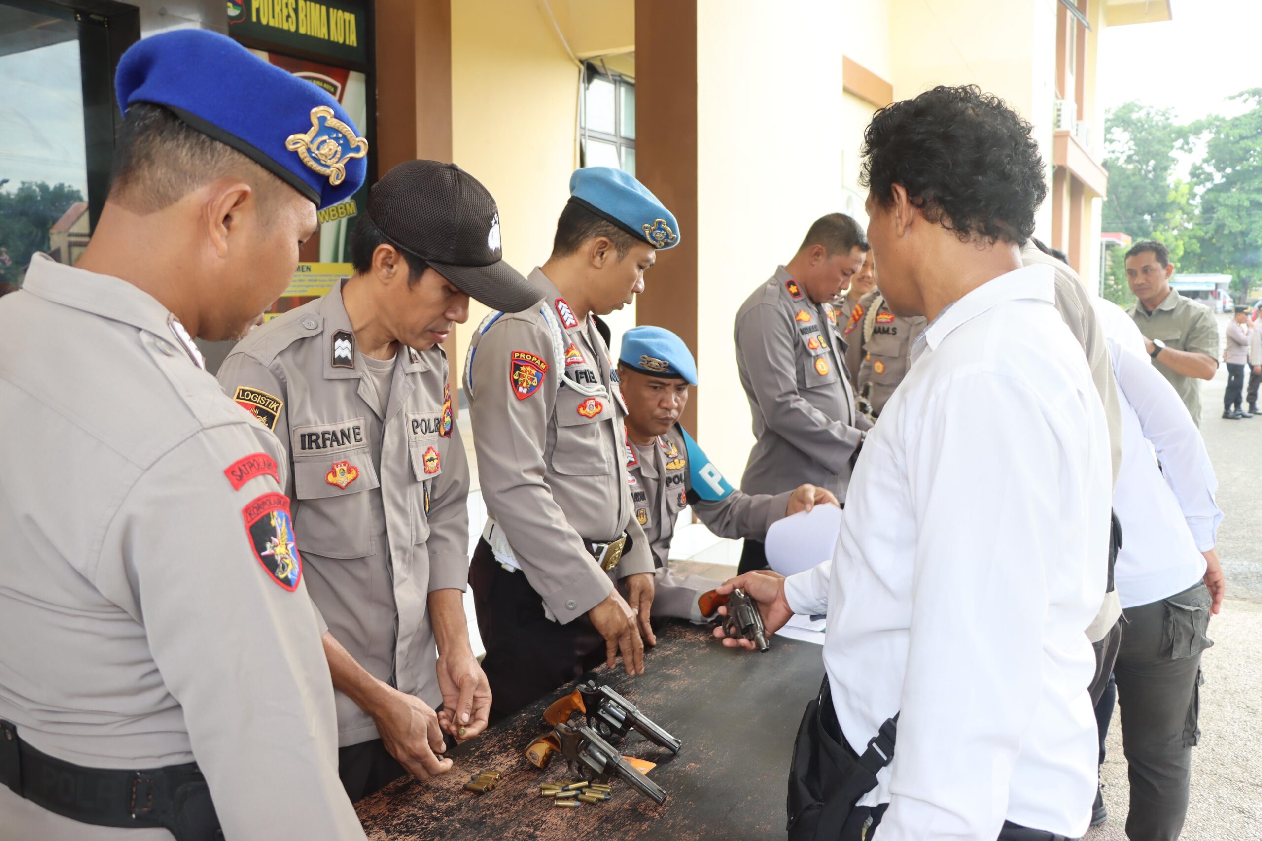 Kota Bima, NTB (9 Desember 2024) – Sie Propam Polres Bima Kota melaksanakan kegiatan pemeriksaan administrasi dan pengawasan senjata api (senpi) organik Polri pada Senin, 9 Desember 2024, pukul 08.00 WITA, bertempat di Lobi Polres Bima Kota.