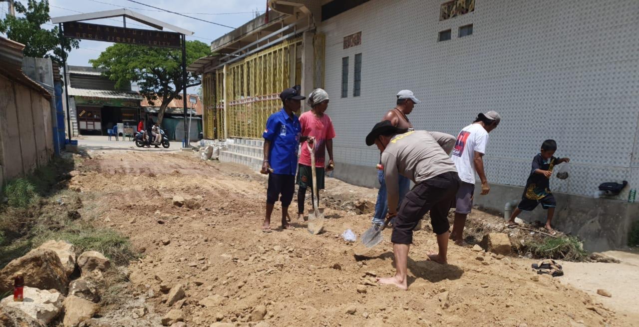 Kegiatan gotong royong ini melibatkan Bhabinkamtibmas bersama masyarakat untuk memperbaiki jalan yang rusak, guna meningkatkan aksesibilitas dan kenyamanan warga dalam beraktivitas sehari-hari.