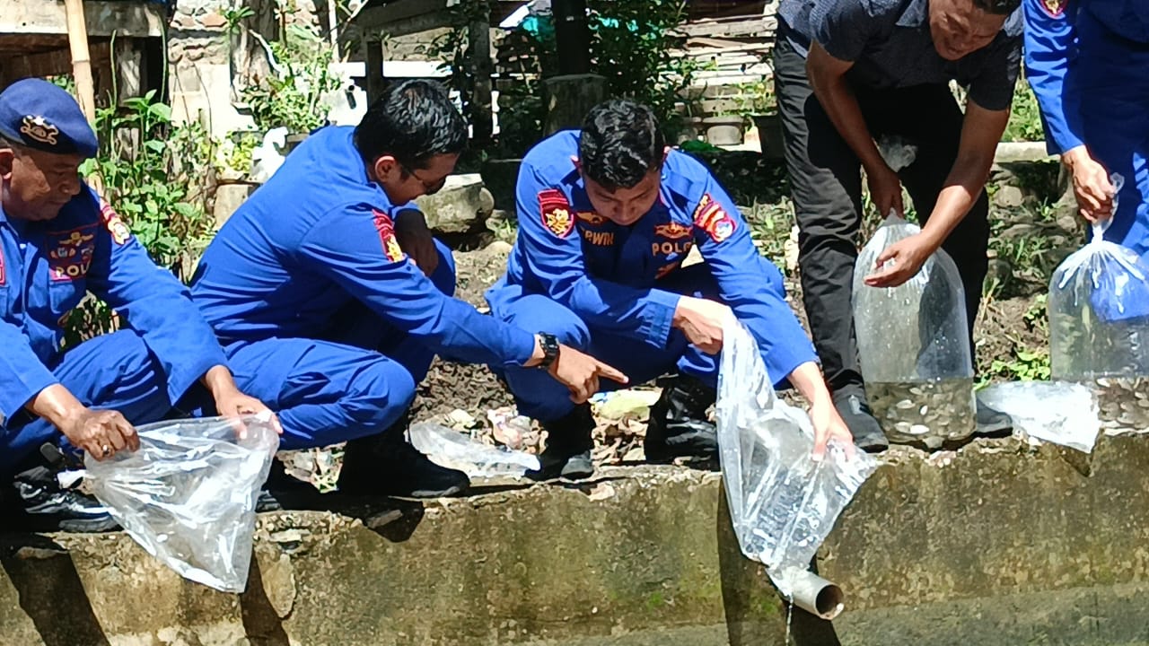 Kapolres Dompu AKBP Zulkarnain SIK di wakili oleh Kasat Polairud Ipda Herwin Jonathan Nababan S.Tr.K melaksanakan penebaran perdana bibit ikan Nila, dalam rangka mensukseskan program ke 2 Asta cita Presiden Republik Indonesia tentang ketahanan pangan Nasional, Kamis pagi (12/12/24) di mulai sekitar pukul 08.30 sampai dengan selesai pukul 10.00 Wita.