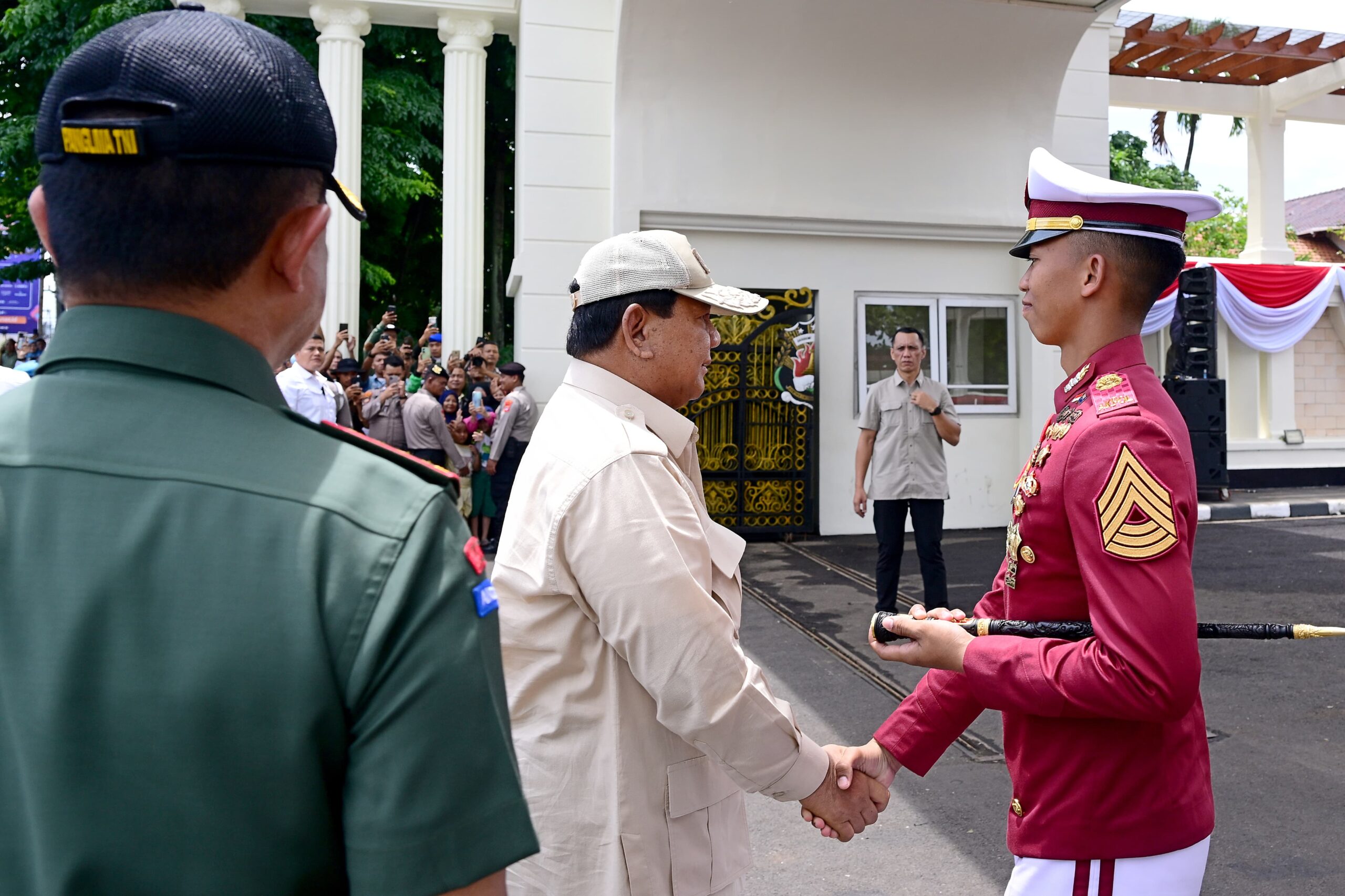 Setelahnya, Presiden Prabowo menaiki kendaraan taktis Maung menuju Auditorium Cendrawasih, Graha Cendekia, Akpol. Sepanjang perjalanan, Presiden Prabowo disambut jajaran TNI-Polri, para pelajar, hingga masyarakat yang berdiri di sepanjang seraya menyanyikan lagu dengan semangat.