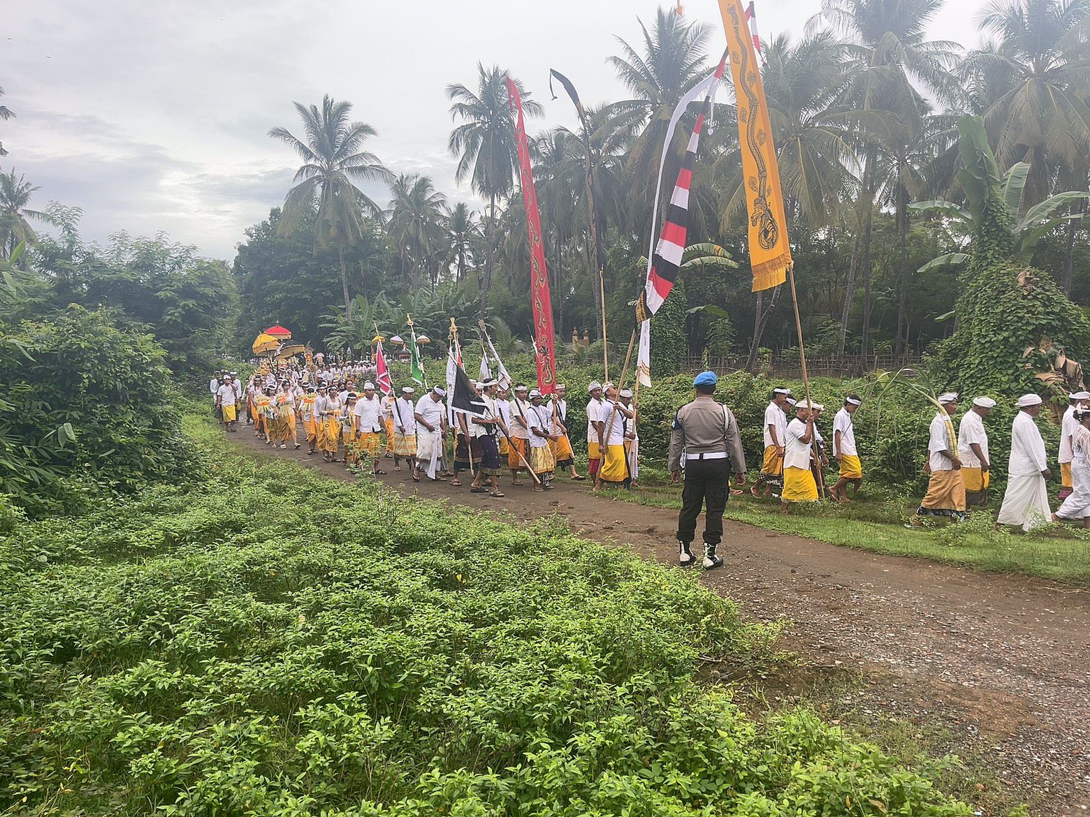 Dalam rangka menciptakan Kamseltibcarlantas, Polres Lombok Utara menggelar pengamanan kegiatan keagamaan yaitu acara mekiis atau persembahyangan yang di lakukan oleh umat Hindu ke pantai yang bertempat di Tanjung, KLU, Jumat, 13/12/2024.