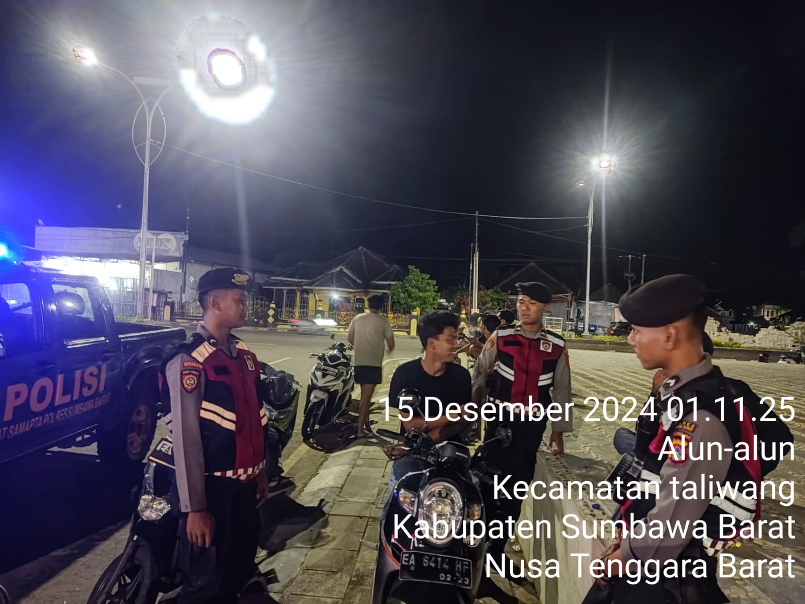 Sumbawa Barat NTB – Personil Unit Patroli Sat Samapta Polres Sumbawa Barat menggelar patroli Blue Light, Sabtu 14/12/2024 ; 23.20 wita.