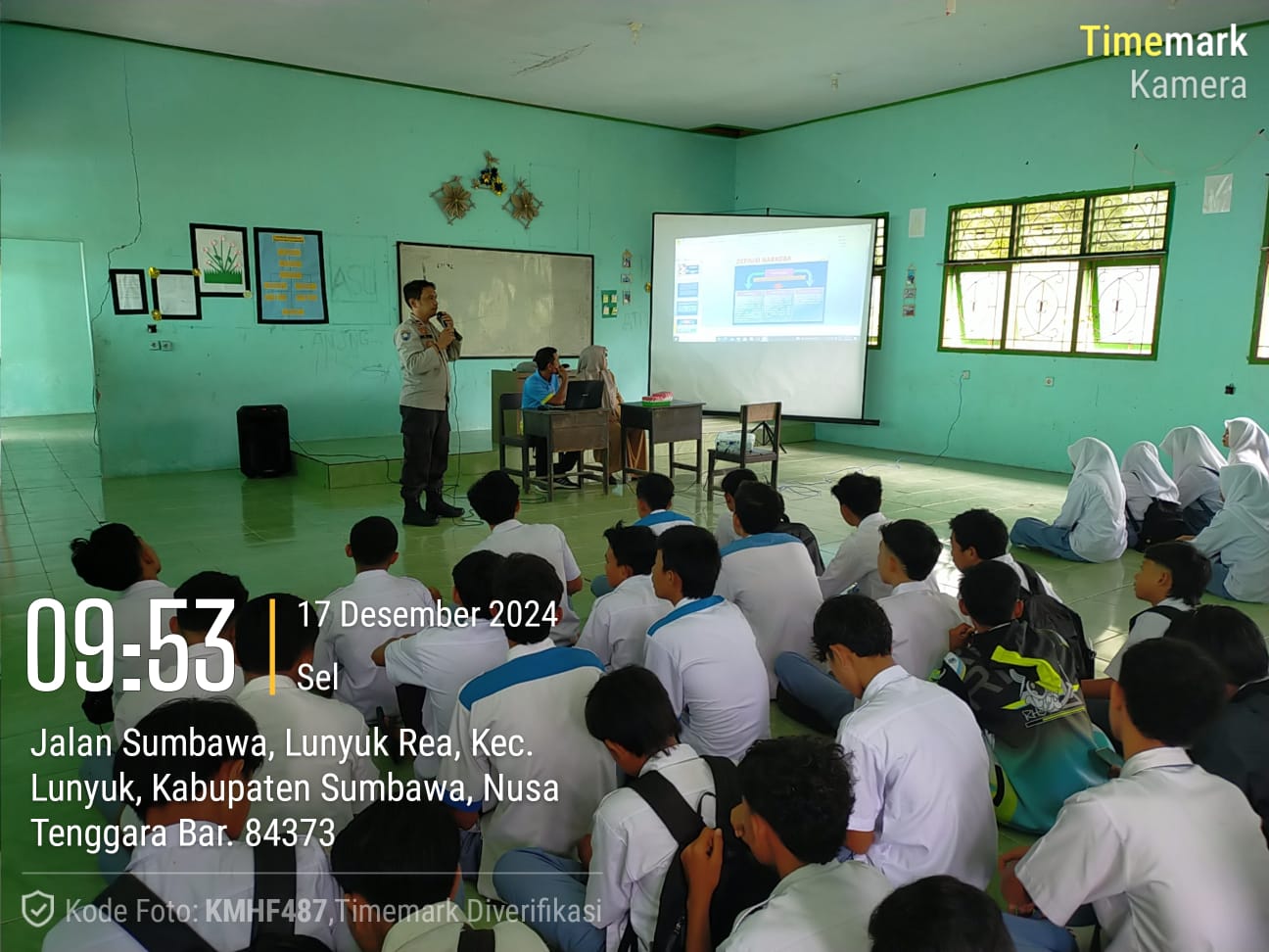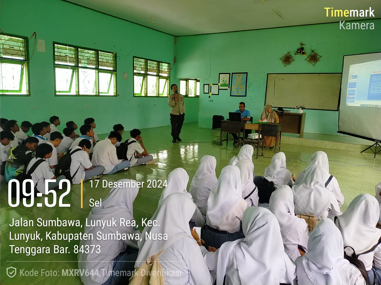 Sumbawa Besar-NTB, Polsek Lunyuk jajaran Polres Sumbawa melalui Kanit Binmas Aipda Warno Efendi, SH., berkesempatan sebagai narasumber pada acara Pasca Sumatif Akhir Semester Ganjil yang diadakan di SMKN 1 Lunyuk, Selasa (17/12/24) pagi.