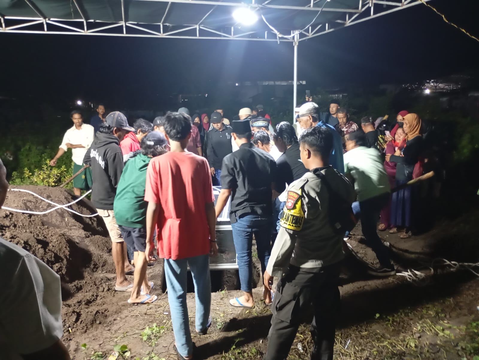 Sumbawa Barat – Anggota Polsek Maluk turut serta dalam prosesi pemakaman jenazah korban tenggelam di Pantai Lawar, yang berlangsung pada hari Senin, 16 Desember 2024. Jenazah korban, yang diketahui bernama DD, seorang pemancing berusia 28 tahun, dimakamkan di TPU Dusun Maluk Loka, Desa Maluk, Kecamatan Maluk, Kabupaten Sumbawa Barat.