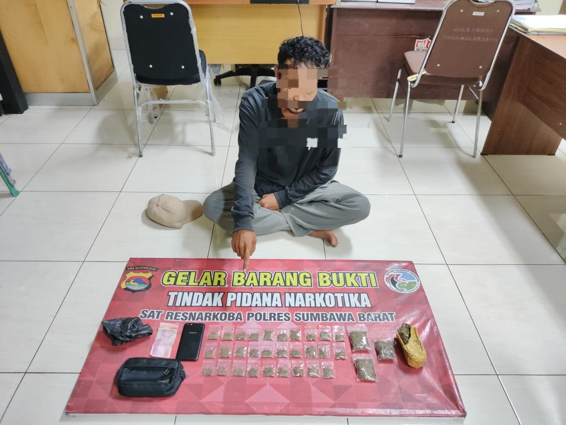 “Pengungkapan pengedar narkotika jenis ganja tersebut dipimpin oleh Kasat Resnarkoba, Iptu I Made Mas Mahayuna, S.H., M.H., bersama Tim Opsnal Sat Resnarkoba dan berhasil menangkap lelaki (MZ) 28 tahun, beralamat di Kelurahan Arab Kenangan,” jelas Kapolres Sumbawa Barat, AKBP Yasmara Harahap, S.I.K., melalui Kasi Humas, Iptu Zainal Abidin, S.H.