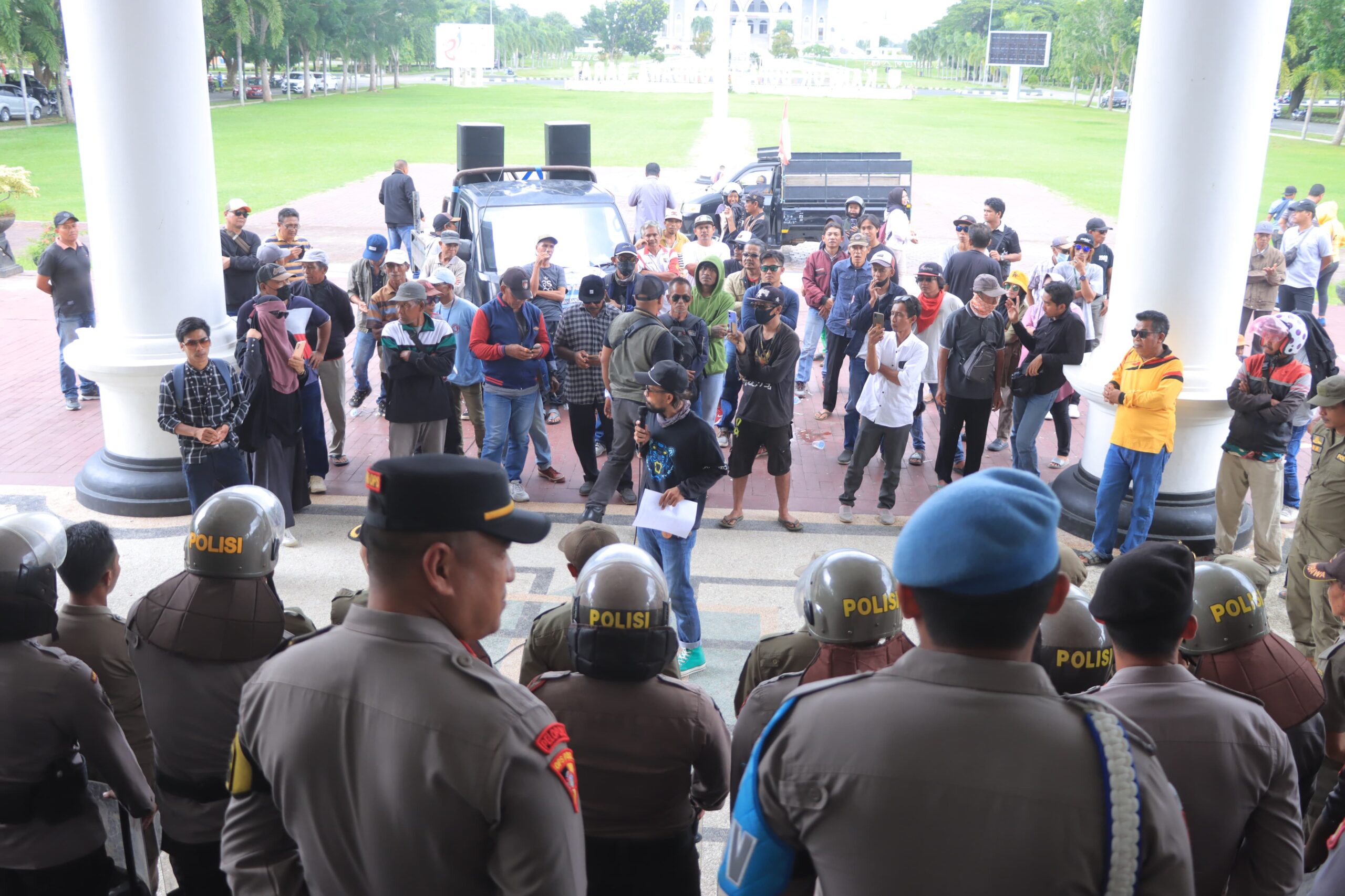 Begitu massa aksi tiba di Kantor Bupati Sumbawa Barat pada pukul 10.05 WITA, pengamanan dilakukan di sekitar lokasi demonstrasi untuk menjaga ketertiban dan ketertiban selama aksi berlangsung. Pada pukul 10.40 WITA, Pj. Sekda Kabupaten Sumbawa Barat menemui massa aksi dan memberikan tanggapan terhadap tuntutan yang disampaikan. Pengamanan tetap berlangsung dengan ketat untuk memastikan dialog berjalan aman dan terkendali.