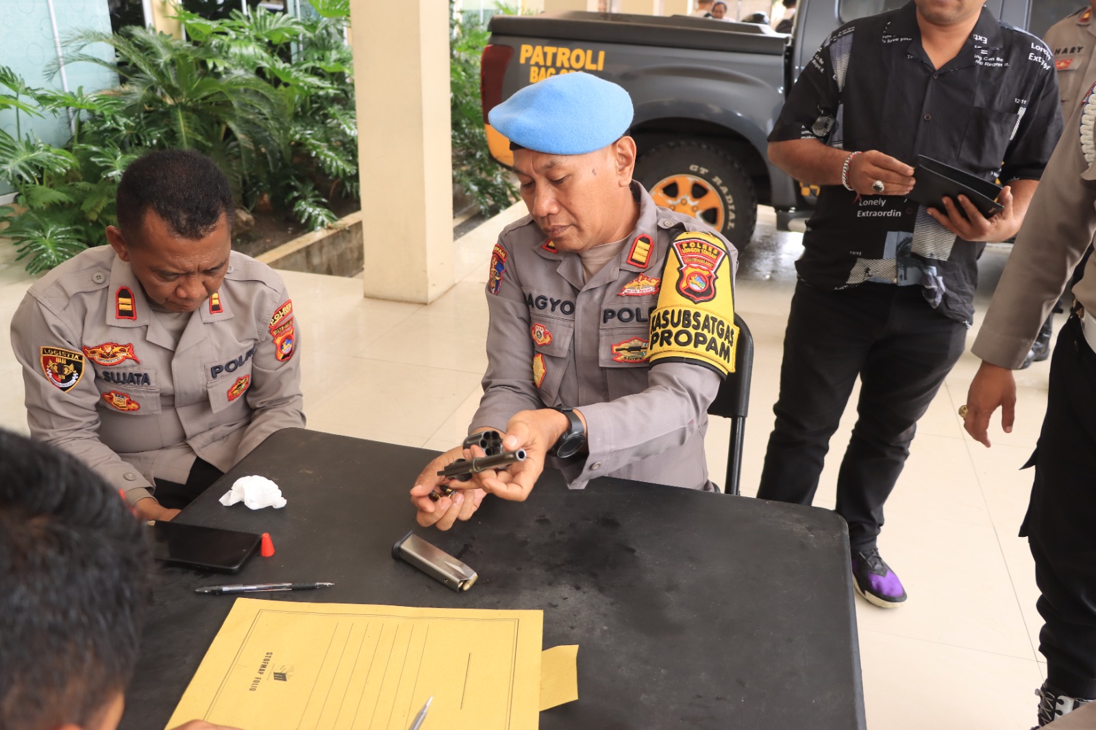Dalam pemeriksaan ini, Kasi propam AKP Sribagyo memimpin langsung pengecekan terhadap senjata api. Dia menegaskan bahwa senjata yang tidak memenuhi standar kelengkapan administrasi akan ditarik untuk di gudangkan sementara waktu.