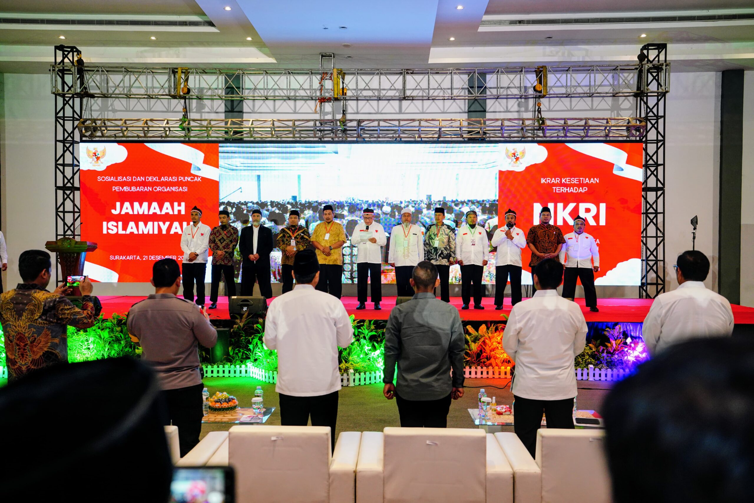 “Tentunya kami hari ini mewakili rekan-rekan semua, institusi Polri dan juga tentunya negara mengucapkan terima kasih, dan memberikan apresiasi yang setinggi-tingginya kepada kerja keras bersama dari teman-teman BNPT, Densus, dan kolaborasi yang sangat luar biasa dengan seluruh sahabat-sahabat eks Jamaah Islamiyah,” jelas Jenderal Sigit di Convention Hall Terminal Tirtonadi, Surakarta, Jawa Tengah (Jateng), Sabtu (21/12/24).