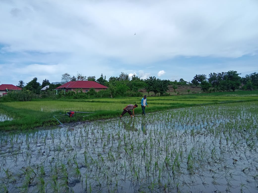 Kegiatan yang berlangsung di lahan pertanian milik Bapak Ismail ini dimulai pukul 09.00 WITA. Dalam kesempatan tersebut, AIPDA Erdan memantau kondisi lahan pertanian jenis padi yang telah ditanam. Sebagai bagian dari upaya pengendalian hama, dilakukan penyedotan air di dalam area persawahan untuk membasmi hama yang mengganggu tanaman.