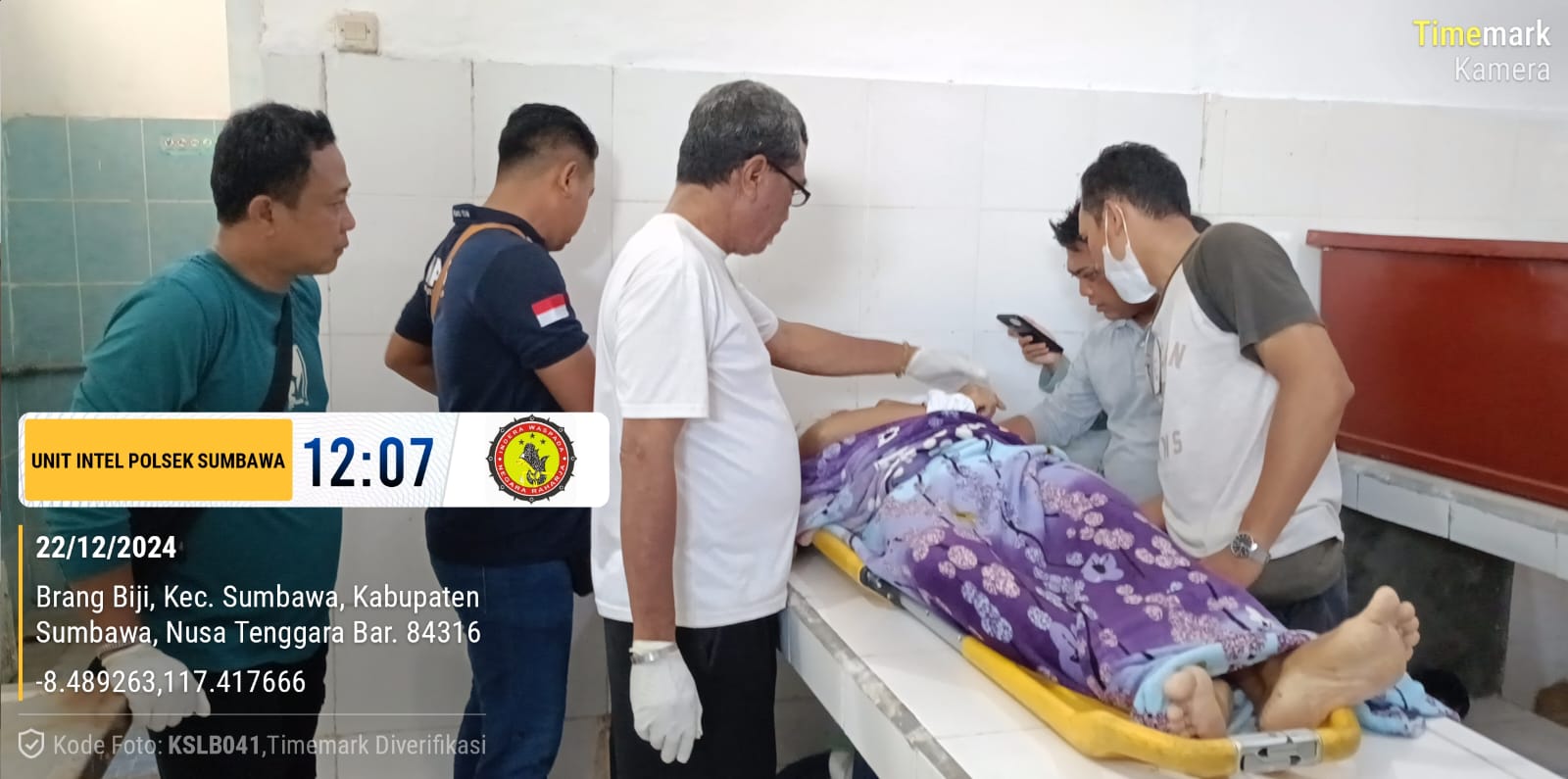 Tak berselang lama, Petugas medis dari PKM Unit 2 Sumbawa tiba di TKP dan bersama sama Polisi melakukan pengecekan awal korban kemudian membawa korban ke RSUD Sumbawa untuk dilakukan pemeriksaan luar penyebab kematian korban.