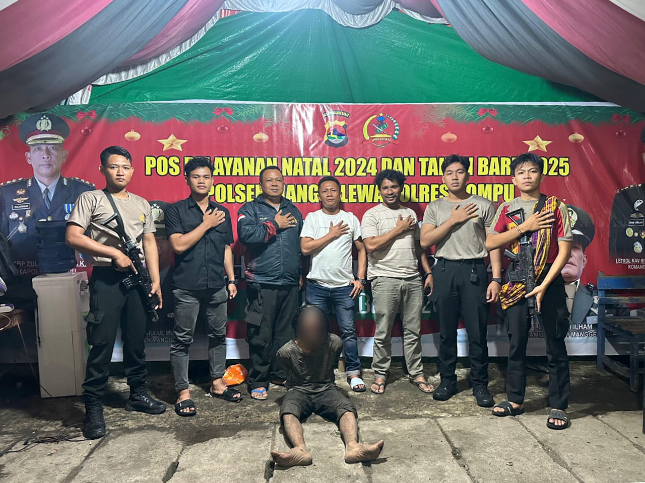 Pukul 02.30 WITA, Kapolsek beserta tim tiba di tempat kejadian perkara (TKP) dan segera berkoordinasi dengan Kepala Desa Kampasimeci yang turut hadir di lokasi. Kapolsek memberikan arahan kepada warga agar menyerahkan penanganan terduga pelaku kepada pihak kepolisian. Setelah dilakukan pendekatan persuasif, terduga pelaku berhasil dievakuasi dan dibawa ke Mapolsek Manggelewa.