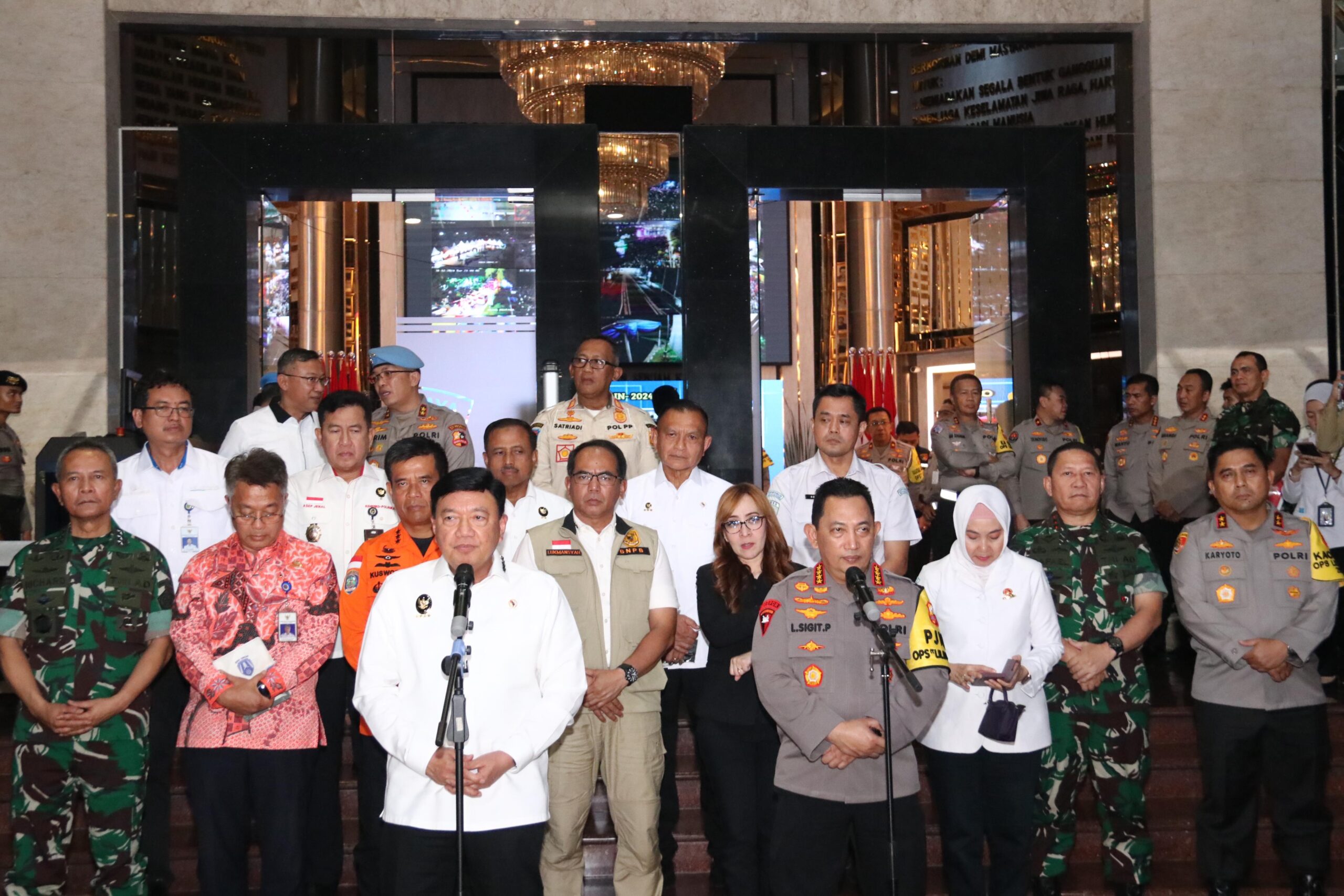 “Tadi baru saja sejak dari pukul 20.00 WIB, kami dari pemerintah dalam hal ini dari Menkopolkam, Kapolri, Panglima TNI yang dalam hal ini diwakili Kasum, Kepala BMKG, Kepala Basarnas, BNPB, dan ini Kemenhub, dan instansi terkait lainnya telah melakukan pengecekan jajaran dalam hal ini Forkopimda untuk mengecek kesiapan terakhir malam tahun baru,” jelas Menkopolkam di BPMJ, Jakarta Selatan, Selasa (31/12/2024).