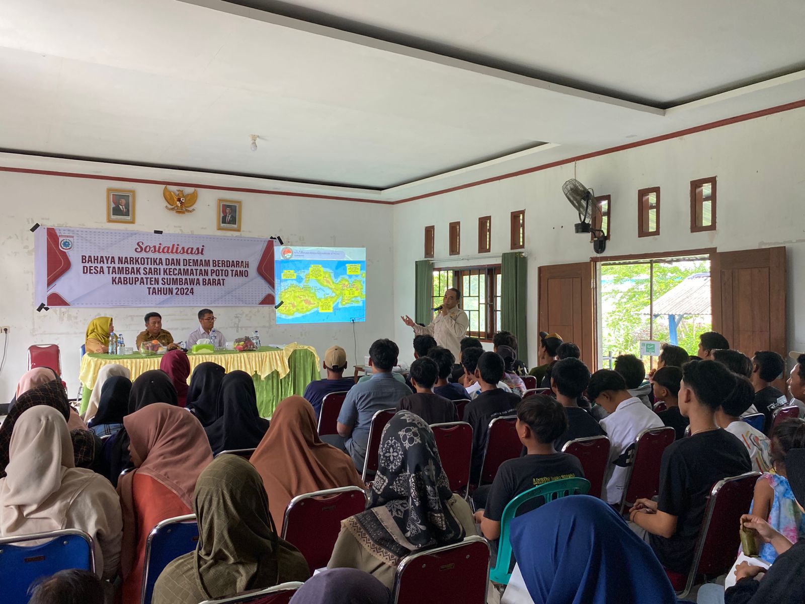 Sumbawa Barat – Sat Resnarkoba Polres Sumbawa Barat menggelar kegiatan penyuluhan tentang bahaya narkoba di Aula Kantor Desa Tambak Sari Kecamatan Poto Tano, Kabupaten Sumbawa Barat, pada hari Senin, 31 Desember 2024, pukul 09.00 WITA. Kegiatan ini bertujuan untuk memberikan pemahaman tentang dampak negatif narkoba serta upaya pencegahan dan rehabilitasi bagi masyarakat setempat.