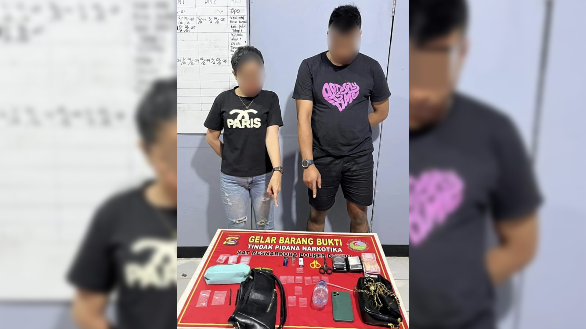Hasil penggeledahan menunjukkan bukti kuat keterlibatan kedua pelaku dalam aktivitas narkotika. Barang bukti yang berhasil disita dari lokasi kejadian meliputi: