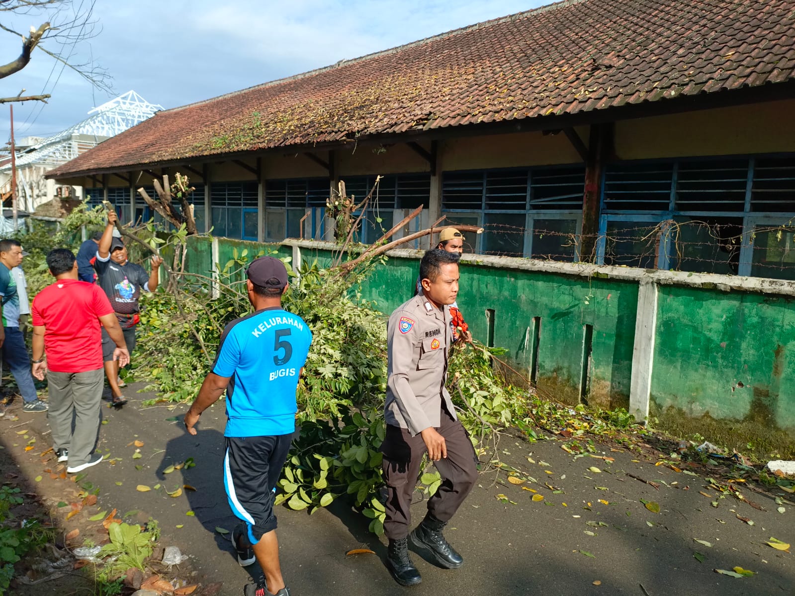 Dalam aksi gotong royong tersebut, petugas dan masyarakat bekerja bersama – sama membersihkan ranting pohon dan merapikan sepanjang jalan lingkungan sehingga membuat lingkungan tetap bersih dan asri di musim hujan ini.