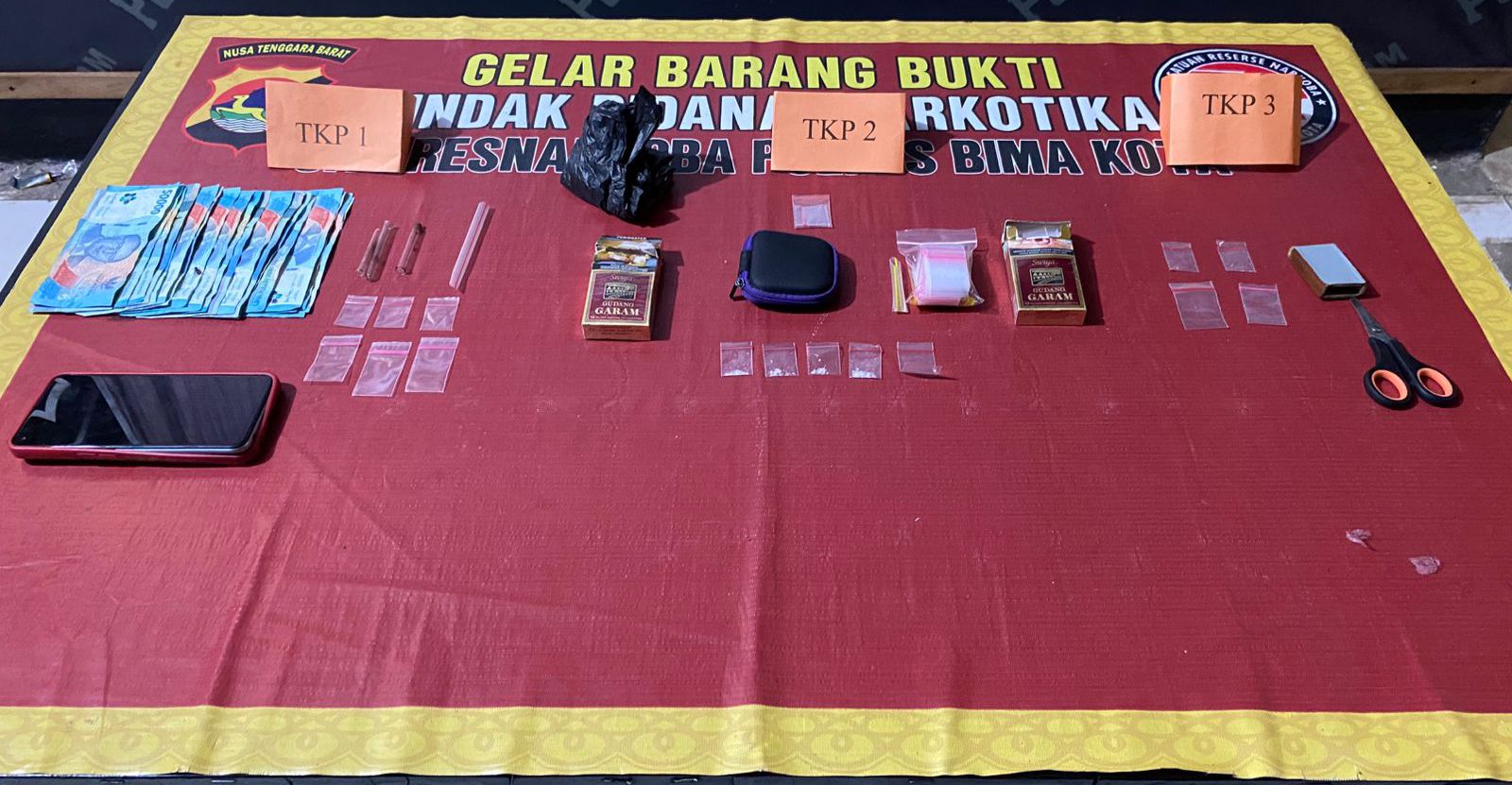 Dalam penggerebekan tersebut, Tim Kaisar Hitam yang dipimpin oleh Katim Aiptu Abdul Hafid, S.H., mengamankan sejumlah barang bukti di lokasi kejadian. Barang bukti tersebut meliputi: