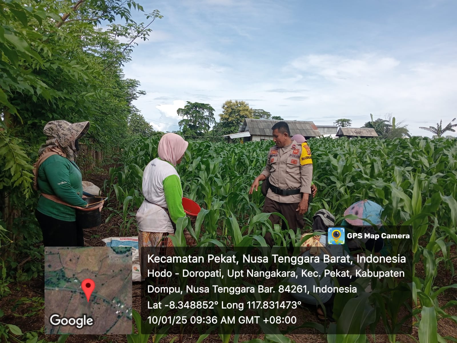 Dalam rangka mendukung Program Ketahanan Pangan Nasional Menuju Indonesia Emas 2024, Bhabinkamtibmas Desa Doropeti, Polsek Pekat, AIPDA Firdaus, melaksanakan pemantauan lahan milik Sdr. Nasarudin di Dusun Safahu, Desa Doropeti, Kecamatan Pekat, Kabupaten Dompu, pada Jumat (10/01/2025). Kegiatan ini dimulai pukul 09.45 WITA hingga selesai dan berlangsung aman serta lancar.