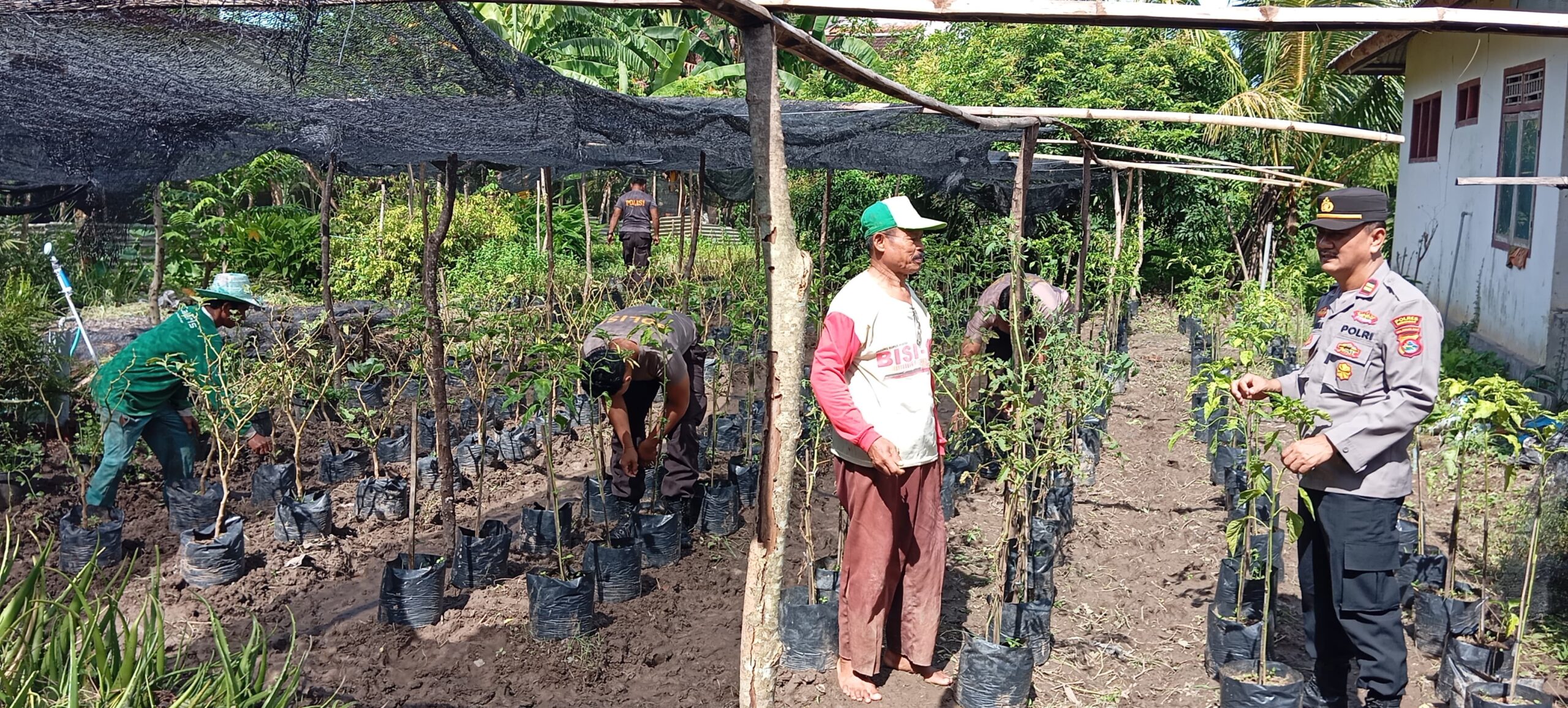 Sumbawa Barat, NTB – Mendukung suksesnya Program Ketahanan Pangan Nasional, Kapolsek Jereweh Iptu Ardiyatmaja bersama anggota melakukan pembibitan dan penanaman lahan Pekarangan Bergizi bersama warga di Dusun Bage Bungkur , Desa Beru , Kecamatan Jereweh , Minggu (12/01/2025).