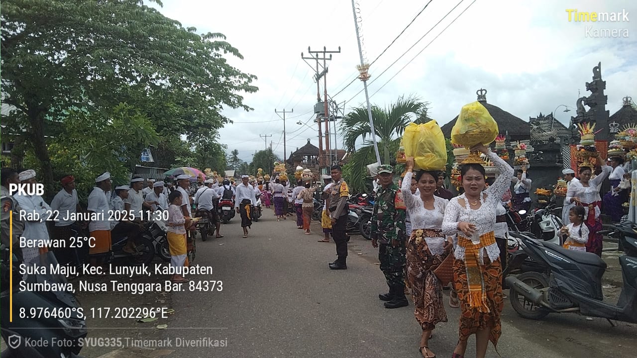 Pada kali ini, Bhabinkamtibmas Desa Sukamaju, Saparwadi Ario, bersama dengan Babinsa Sertu M. Arifin, bersama Anggota Polsek Lunyuk, melaksanakan pengamanan kegiatan keagamaan warga binaan di Pura Penataran Ped, Desa Sukamaju.Rabu (22/01/25) pagi.
