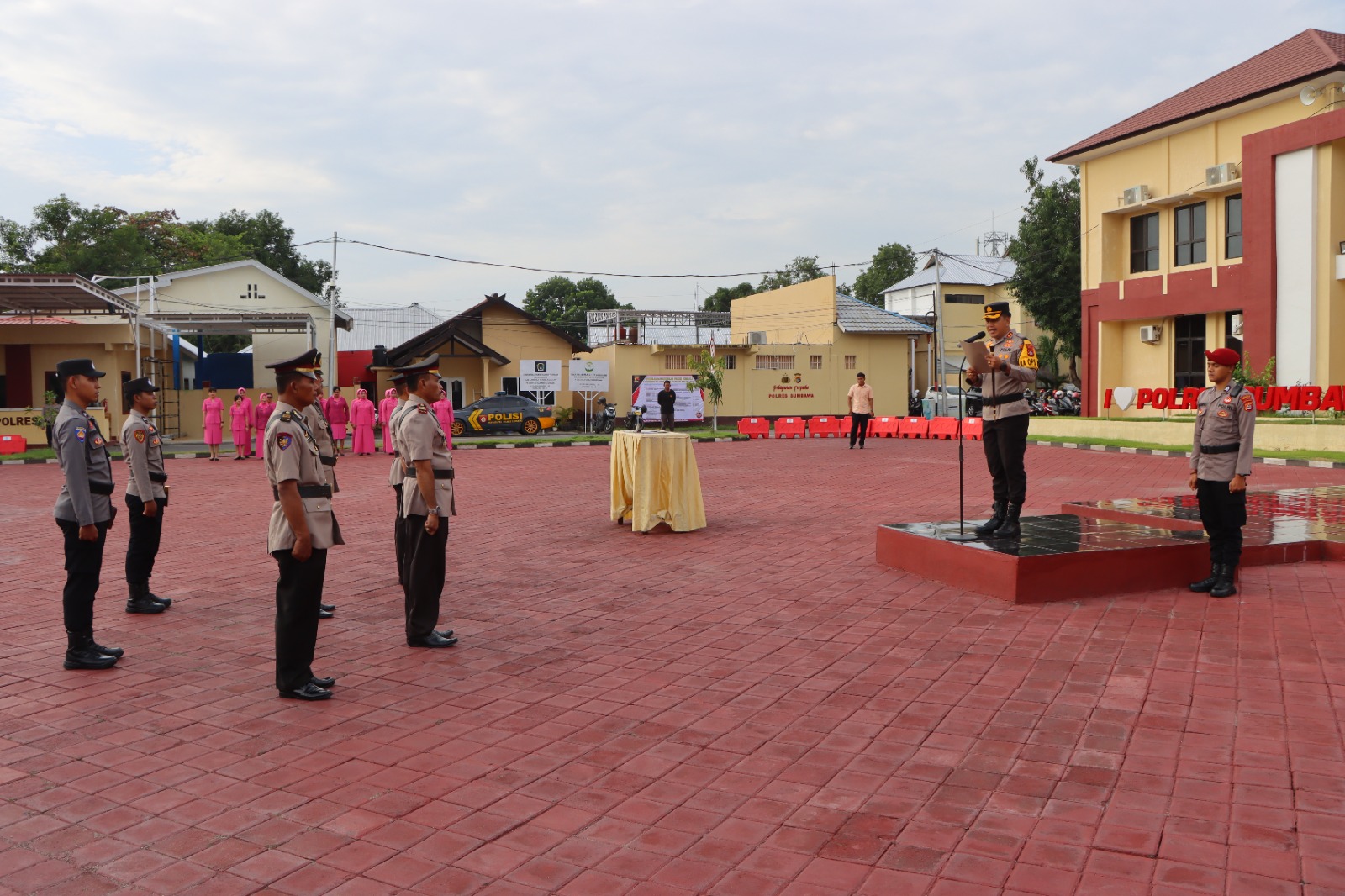 Upacara tersebut dihadiri oleh para Pejabat Utama (PJU) Polres Sumbawa, Kapolsek jajaran, serta seluruh personel Polres Sumbawa dan juga Ketua Bhayangkari Cabang Sumbawa Ny. Winda Kania Junaedi dan pengurus Bhayangkari.