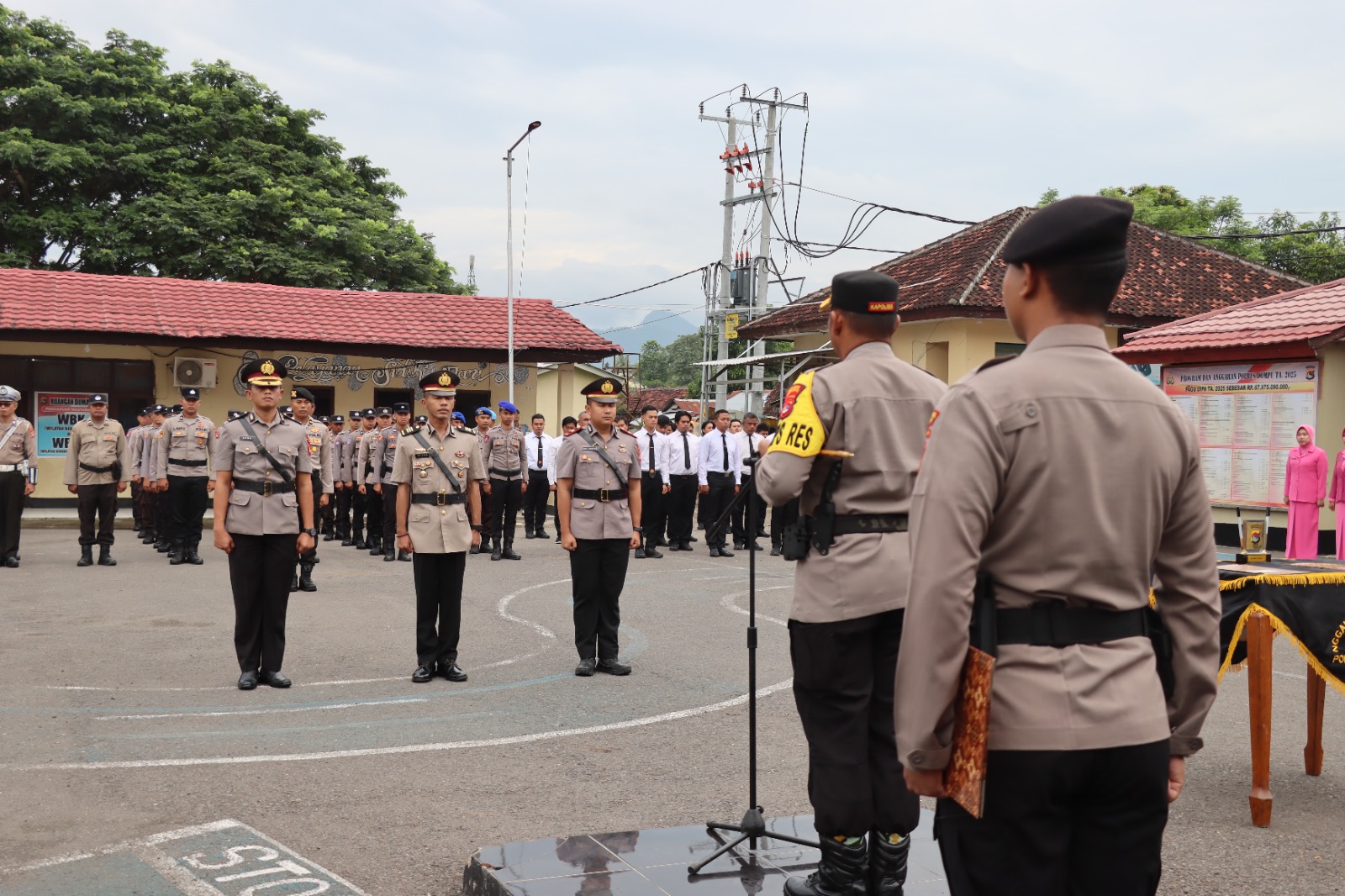 Upacara ini dipimpin langsung oleh Kapolres Dompu AKBP Zulkarnain, S.I.K. dan dihadiri oleh pejabat utama (PJU), para Kapolsek jajaran, personel Polres Dompu, serta Bhayangkari.