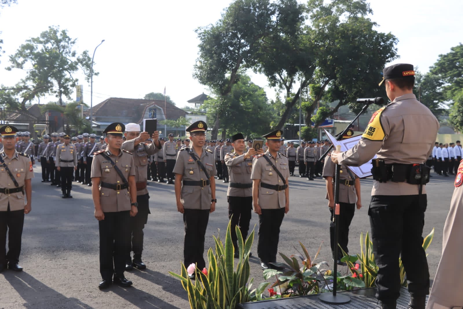 Lombok Tengah (NTB) – Polres Lombok Tengah menggelar upacara serah terima jabatan Kasat Intelkam, Kapolsek Janapria, Kapolsek Jonggat dan Kapolsek Praya Tengah di Lapang Apel Mapolres.