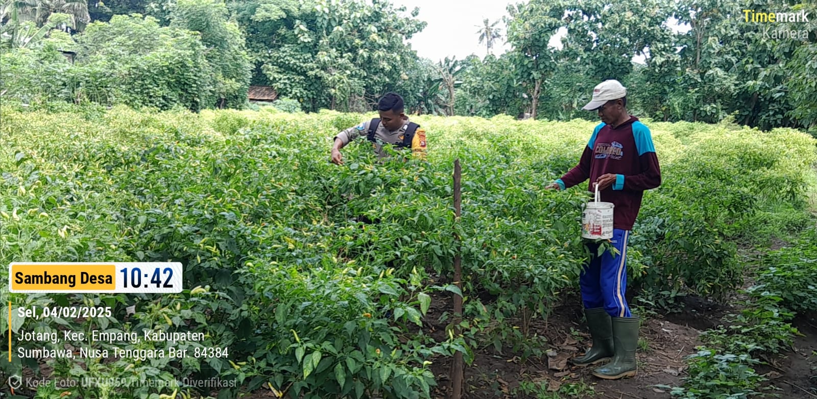 Sumbawa Besar –NTB, Dalam rangka mendukung ketahanan pangan nasional sesuai dengan Program Asta Cita Presiden Republik Indonesia, Bhabinkamtibmas Desa Jotang, Kecamatan Empang, Brigadir Ardiansah, melakukan sambang desa dan pembinaan kepada para petani di wilayah binaannya, Selasa (04/02/25)pagi.