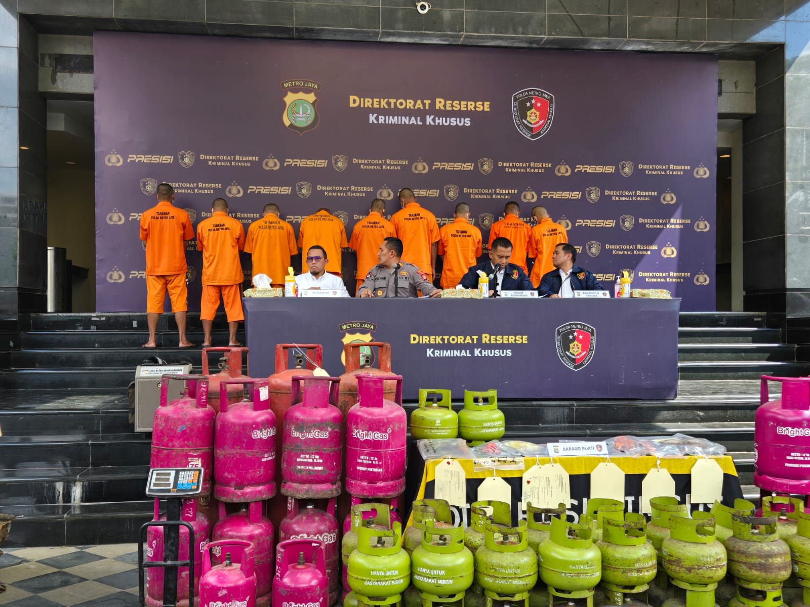 Jakarta, Penyidik Direktorat Reserse Kriminal Khusus (Ditreskrimsus) Polda Metro Jaya mengungkap kasus pengoplosan gas elpiji di daerah Bekasi, Jakarta Selatan, dan Jakarta Barat.