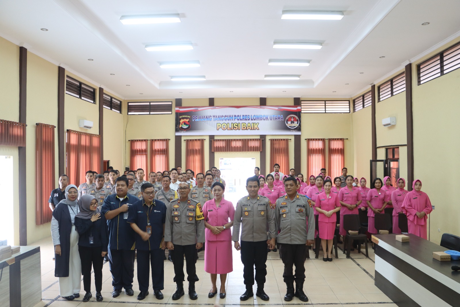 Kegiatan yang dilaksanakan di aula Sarja Arya Racana (SAR) Polres Lombok Utara ini dalam hal kegiatan ini Kapolres Lombok Utara AKBP Agus Purwanta, S.I.K. dalam hal ini diwakili oleh Wakapolres Lombok Utara Kompol I Nyoman Adi Kurniawan, SH., yang di hadiri Para Pejabat utama (PJU) Polres Lombok Utara dan Anggota Polres Lombok Utara dan Polsek Jajaran serta Bhayangkari.
