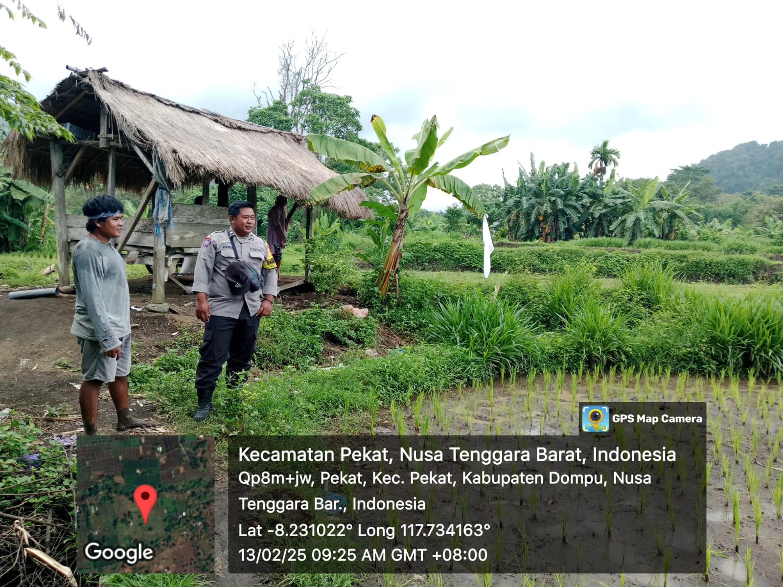 Sebagai bentuk dukungan terhadap Program Ketahanan Pangan Nasional Menuju Indonesia Emas 2024, Bhabinkamtibmas Desa Pekat, Brigpol Syamsuri Akhamdi, melaksanakan pemantauan langsung terhadap lahan pertanian milik Sdr. Anik di Dusun Gunung Batu, Desa Pekat, Kecamatan Pekat, Kabupaten Dompu, Kamis (13/2/2025) pagi.