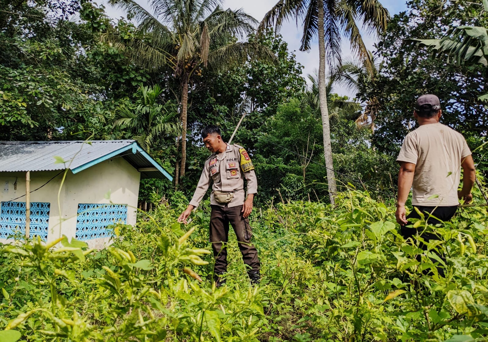 Dalam kegiatan ini, Bhabinkamtibmas terus aktif mendampingi warga dan melihat langsung pekarangan milik warga yang telah dimanfaatkan untuk pertanian. Salah satu pekarangan milik masyarakat yang ditanami berbagai tanaman pangan seperti terong ungu dan cabai rawit telah berkembang dengan baik dan tanaman cabe sudah mulai berbuah.