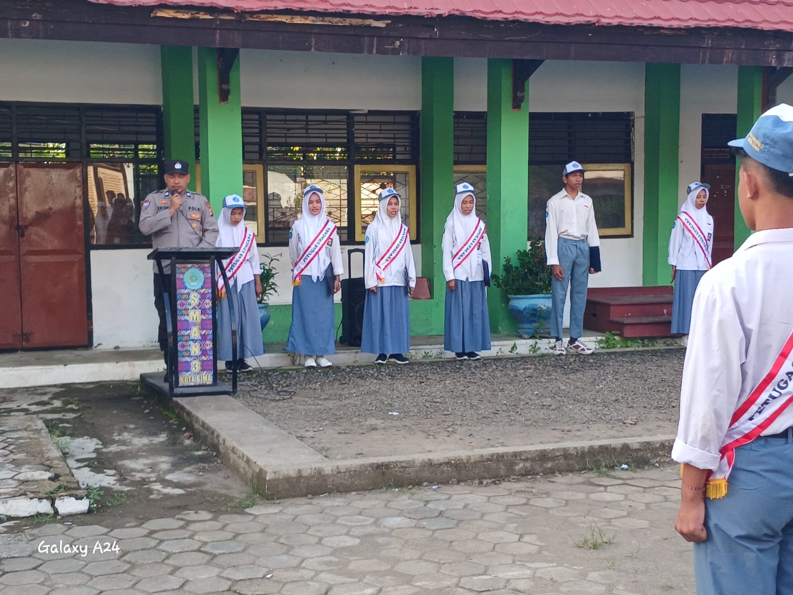 Kota Bima, NTB (17/2) – Sat Binmas Polres Bima Kota melaksanakan kegiatan pembinaan dan penyuluhan keamanan dan ketertiban masyarakat (Kamtibmas) di SMAN 3 Kota Bima pada Senin, 17 Februari 2025, pukul 07.00 WITA. Dalam kegiatan ini, Kanit Bintibsos Sat Binmas Polres Bima Kota, AIPTU Budi Krisna, bertindak sebagai Pembina Upacara Bendera.