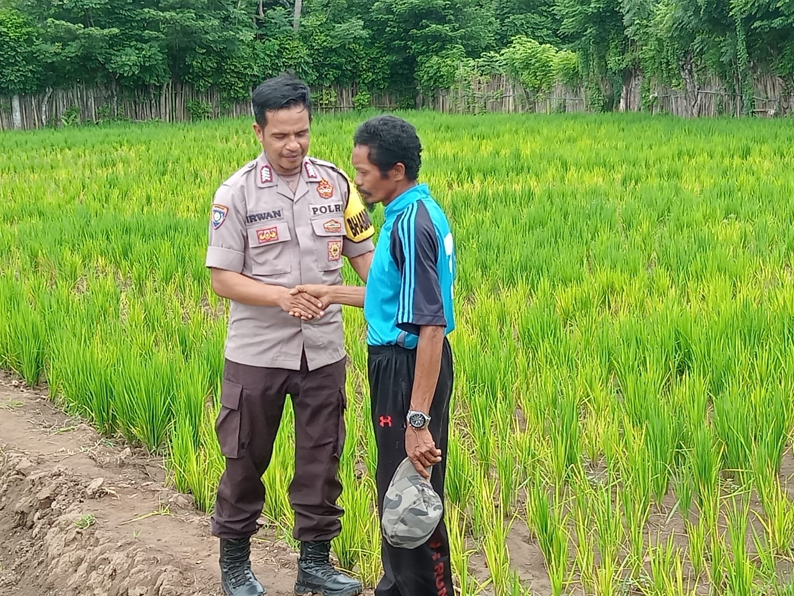 “Dalam kegiatan ini, Bhabinkamtibmas melaksanakan silaturahmi sekaligus pemantauan tanaman padi di lahan pertanian milik Bapak Sukrin di Dusun Jati Baru, Desa Waduruka, Kecamatan Langgudu, Kabupaten Bima. Hal ini sebagai bentuk kepedulian terhadap ketahanan pangan serta mendukung petani dalam meningkatkan hasil panennya,” ujar Ipda Baiq Fitria Ningsih.
