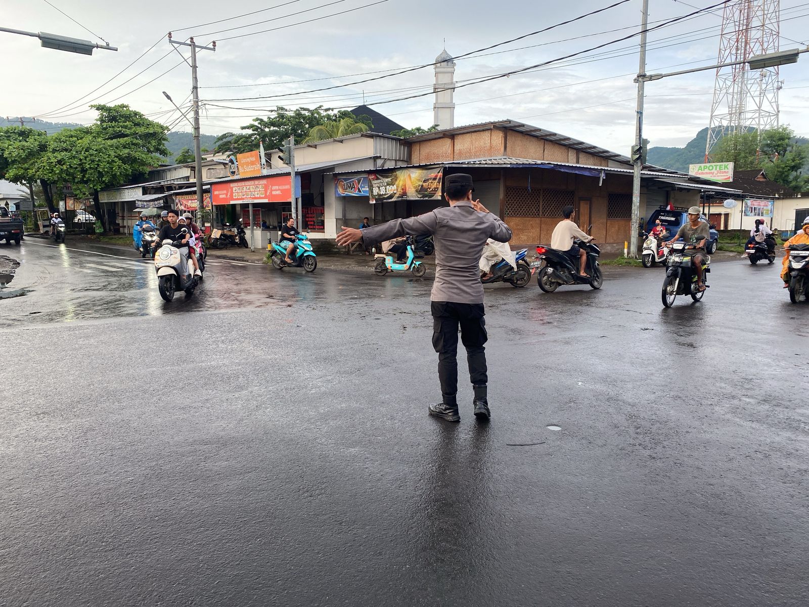 Personil piket jaga yang bertugas dalam kegiatan ini bekerja keras untuk mengatur arus lalu lintas pada jam-jam sibuk.