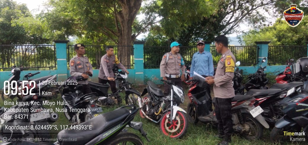 Sumbawa Besar-NTB, Polsek Moyo Hulu melaksanakan kegiatan razia kendaraan yang menyasar para siswa di SMA Negeri Moyo Hulu, khususnya bagi mereka yang menggunakan knalpot brong, Kamis (20/02/25) pagi.