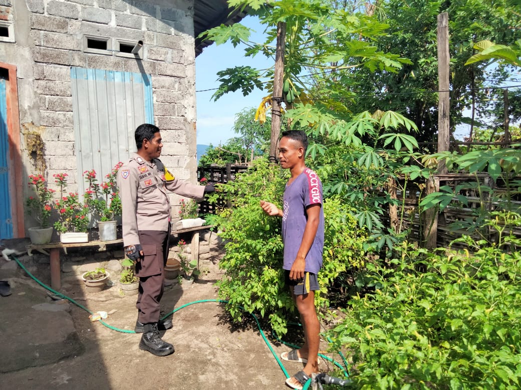 Dalam upaya mendukung Program Ketahanan Pangan Nasional Menuju Indonesia Emas 2025, Bhabinkamtibmas Desa Cempi Jaya, Bripka Ismail, melakukan pemantauan pemanfaatan lahan pekarangan milik warga di Dusun Langudii, Desa Cempi Jaya, Kecamatan Hu’u, Kabupaten Dompu, Jumat (21/2).