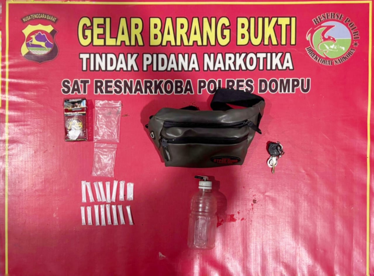 Tim Satuan Reserse Narkoba (Satresnarkoba) Polres Dompu berhasil menangkap seorang pria berinisial AS (46), warga Lingkungan Kandai Satu, yang diduga sebagai pengedar narkotika jenis sabu. Penangkapan dilakukan di pinggir Jalan Sultan Hasanuddin, tepatnya di depan SMKN 1 Dompu, pada Kamis (20/2) sekitar pukul 11.50 WITA.
